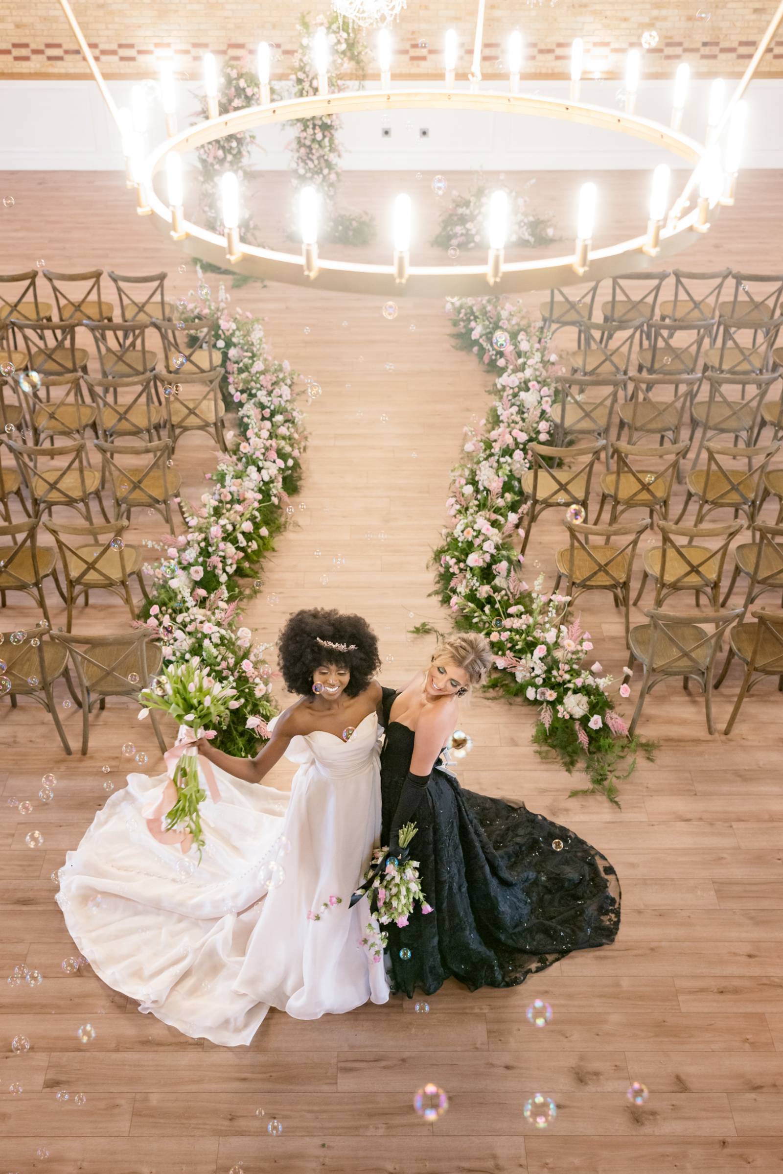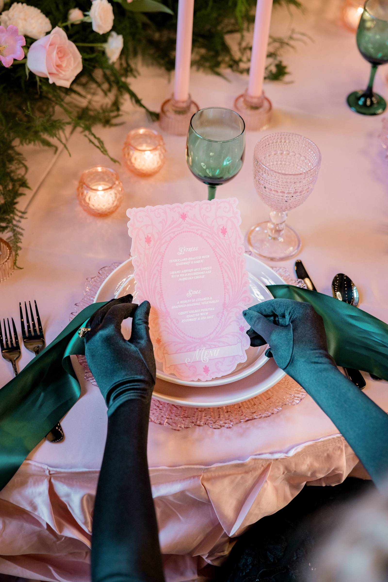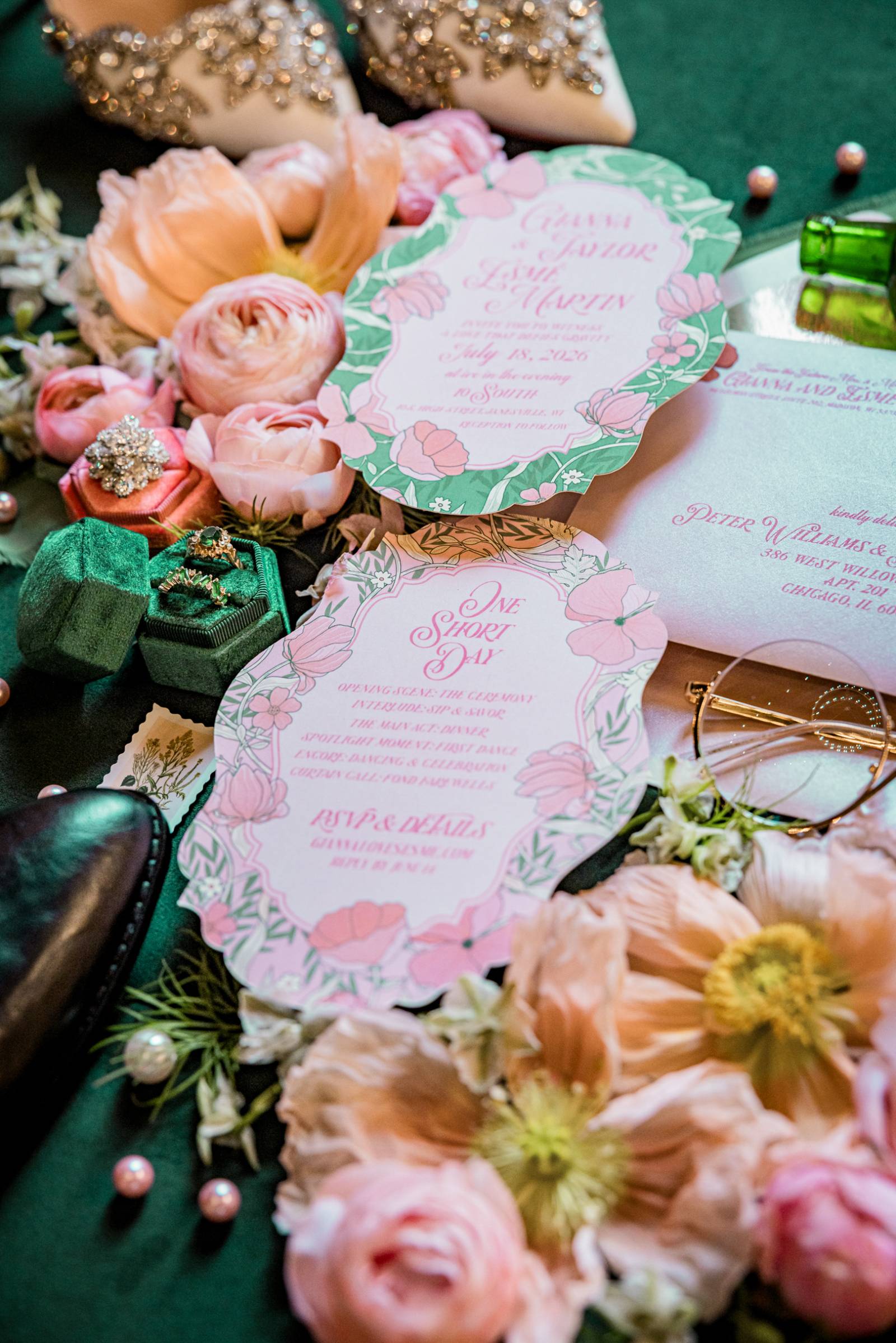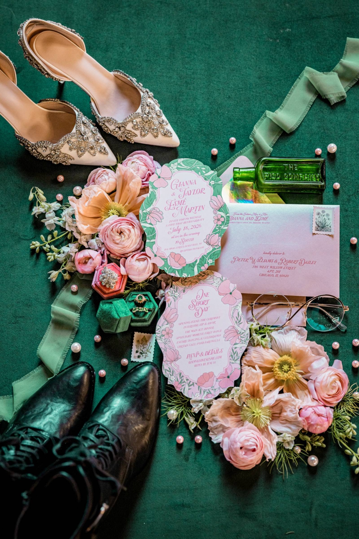 Vivacious. Modern. And completely enchanting. This Wicked-inspired styled shoot takes a playful nod from Broadway, transforming into a wedding design that's colorful, creative, and spell-binding. Set against the historic warmth of 10 South Venue, the shoot pairs layered paper details, lush floral moments, and dreamy fashion with a palette of softened greens and pinks for a romantic take on a beloved story. Designed with magic in every detail, it's a must-see for couples wanting something artful and cinematic.
