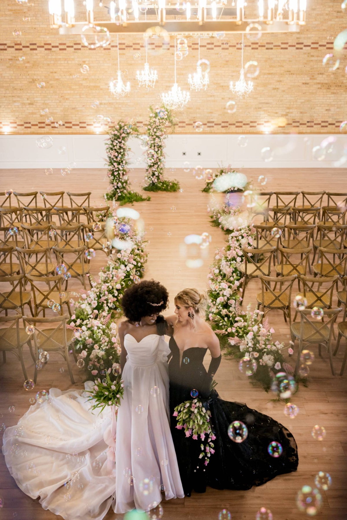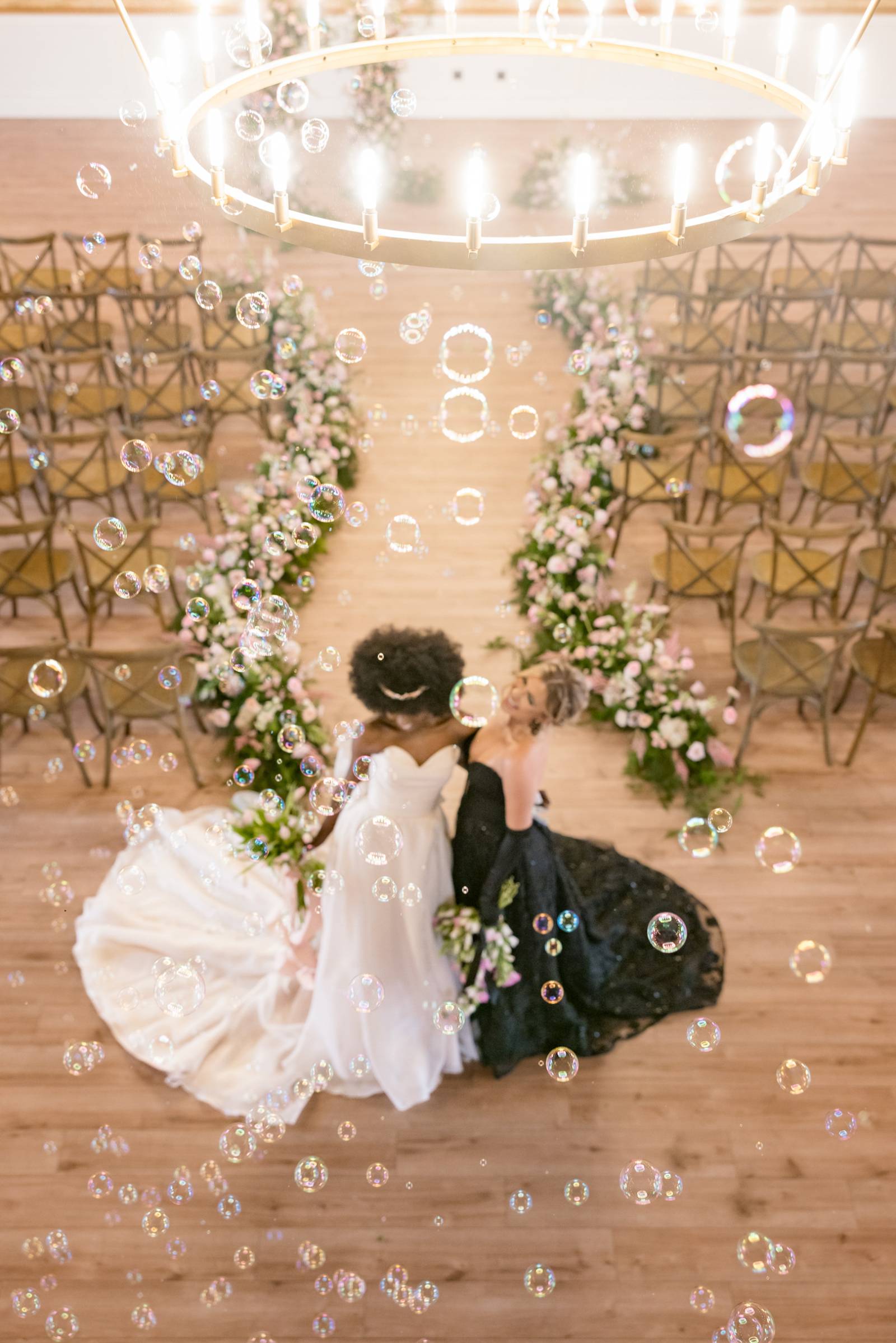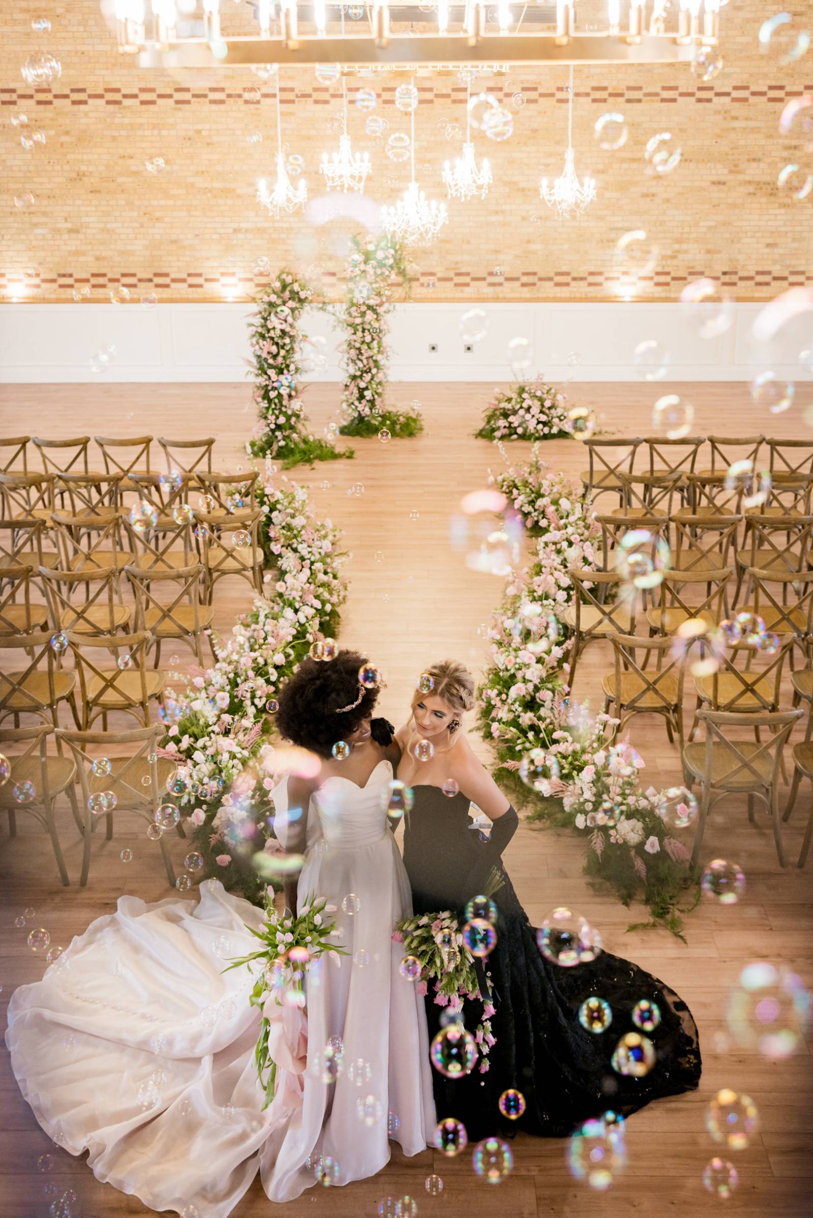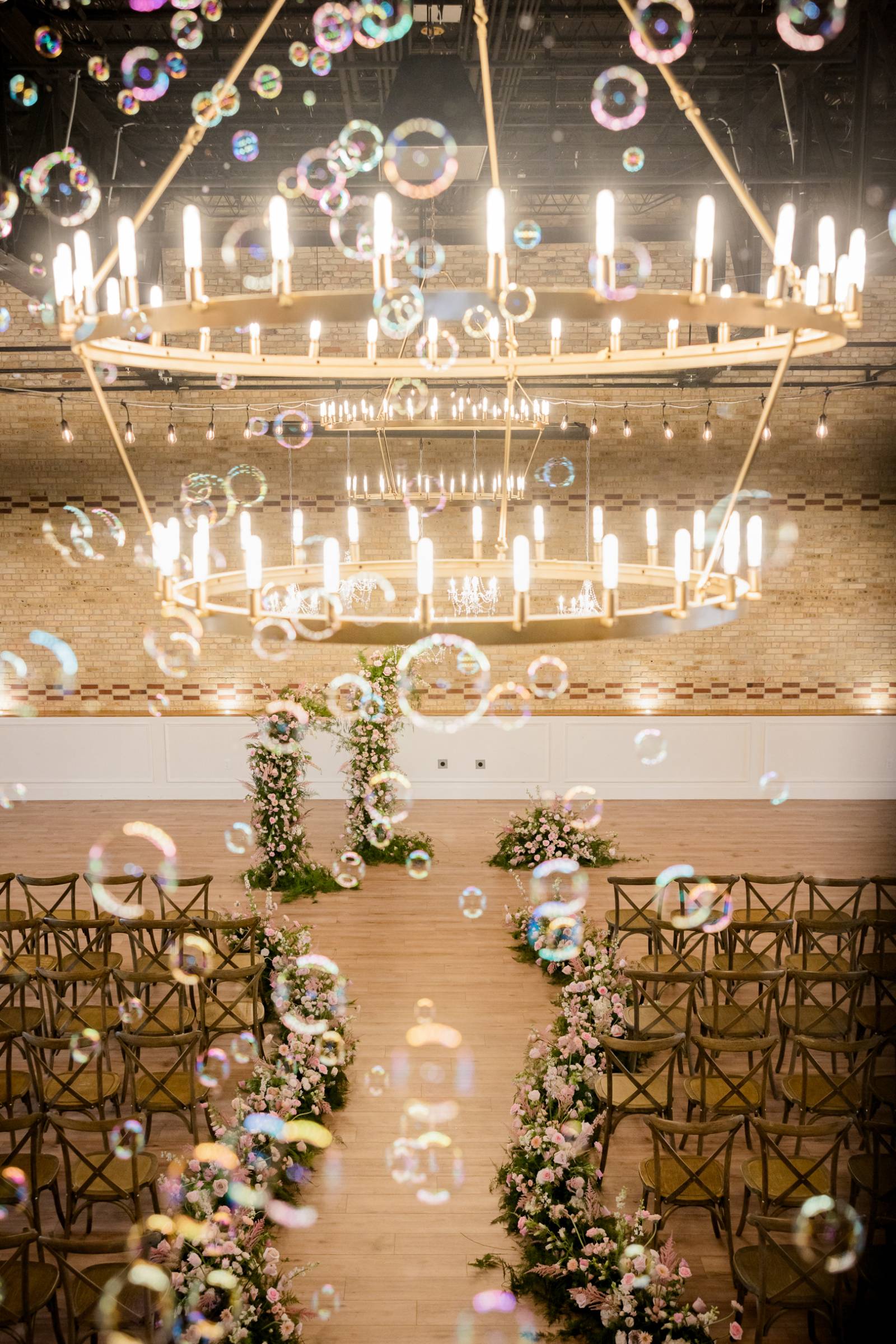 Blending posed portraits with candid moments, The Wedding Flashers documented every styled detail across 10 South’s unique spaces. They masterfully handled playful challenges like a bubble machine drifting whimsical foregrounds into frame, artistically capturing the warmth of the historic ballroom and the glow of its chandeliers and natural light. The resulting gallery was bright, airy, ethereal, and full of joy.
