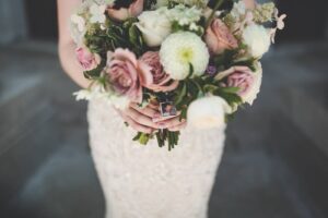 DESCRIBE YOUR WEDDING FLOWERS: Classic and simple, with touches of greenery.
