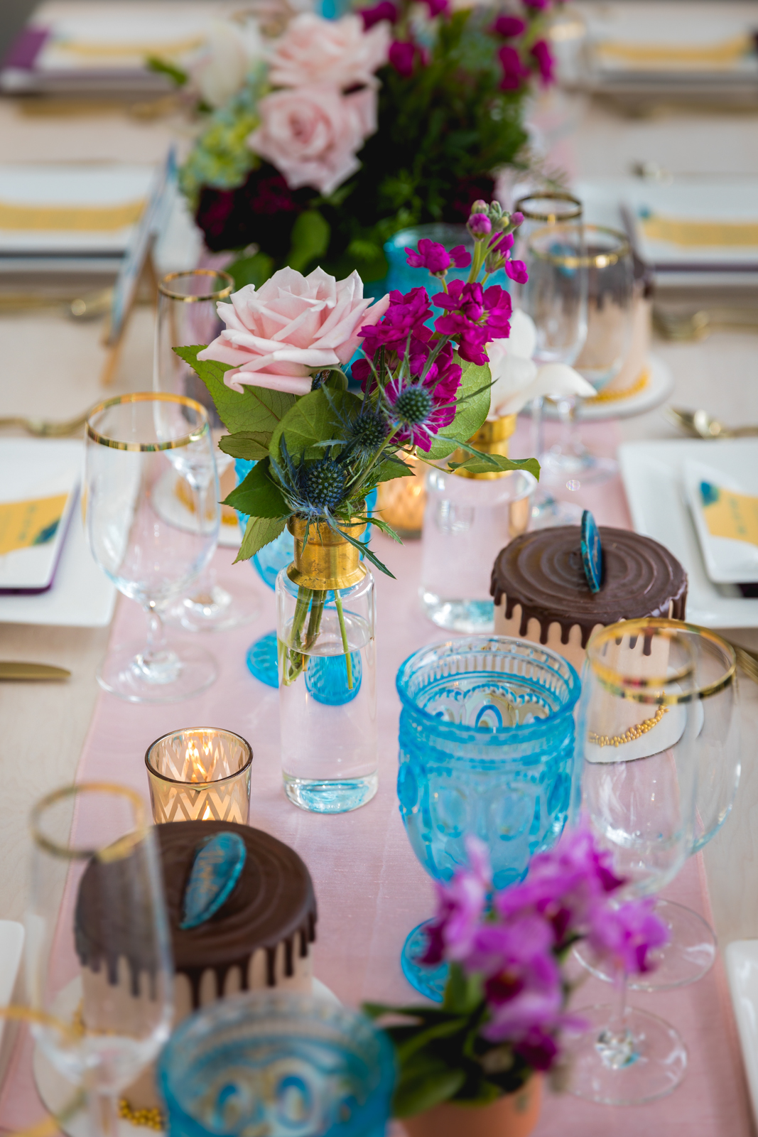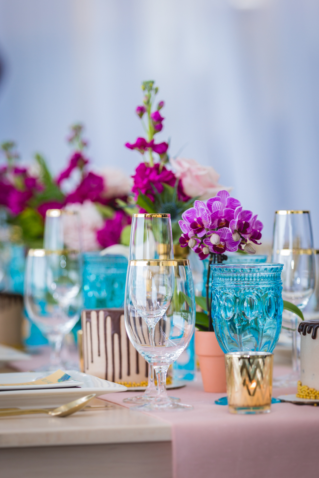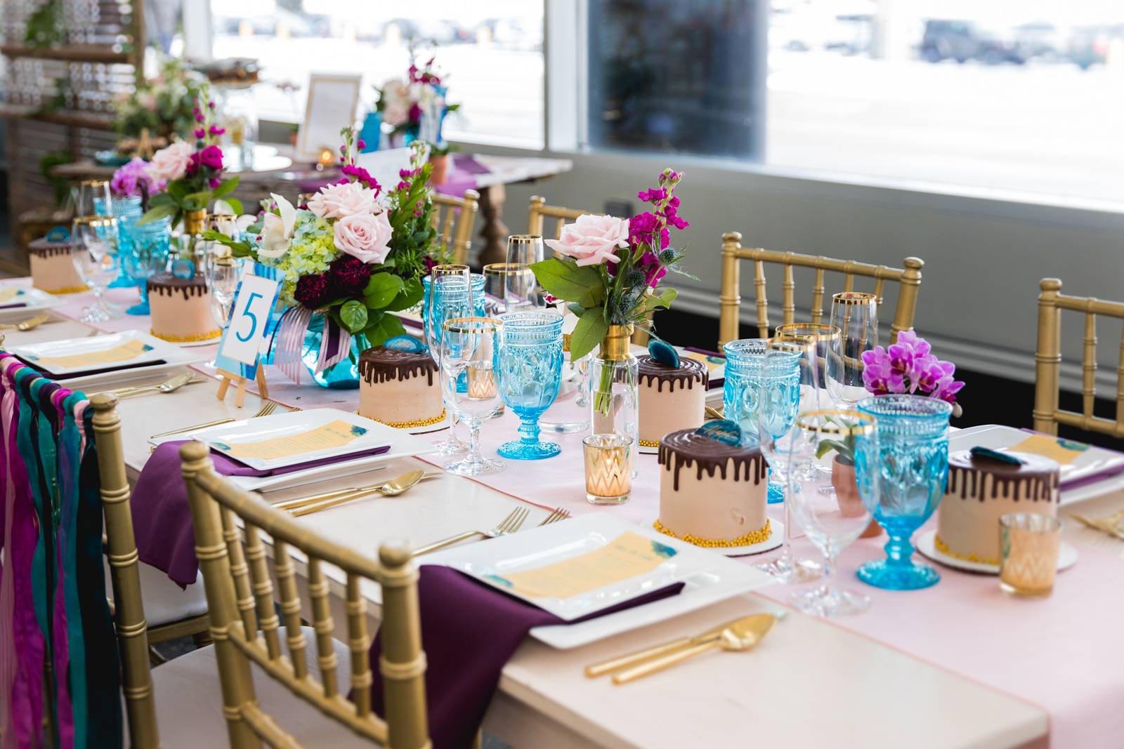 Stunning floral arrangements from B-Style Floral are a standout centerpiece for this colorful scape.