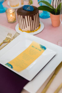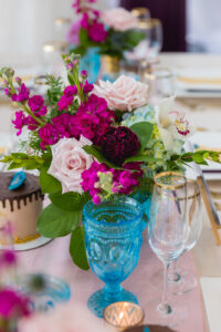 During our 2020 Wedding Planner & Guide Winter Wedding Show, this decadent and colorful wedding scape, with florals and coordination, by B-Style Floral, made its debut. Within this scape captured by The Wedding Flashers, we will showcase how our amazing vendors can come together to create the wedding of your dreams. Featuring Brides N’ Belles, Sandy Kakes, Sugar Pear Design, Event Essentials, and A La Crate Rentals, keep reading to see all of the colorful, intricate details with sparkling golden flare within this design below!