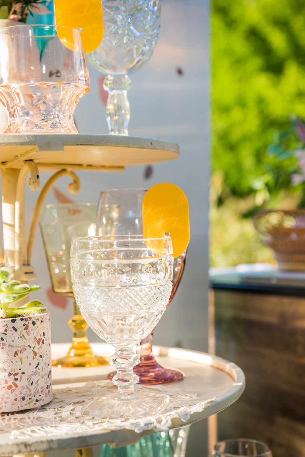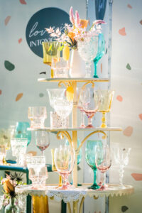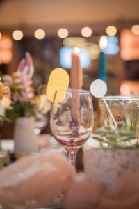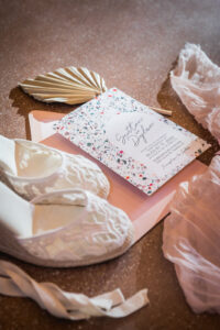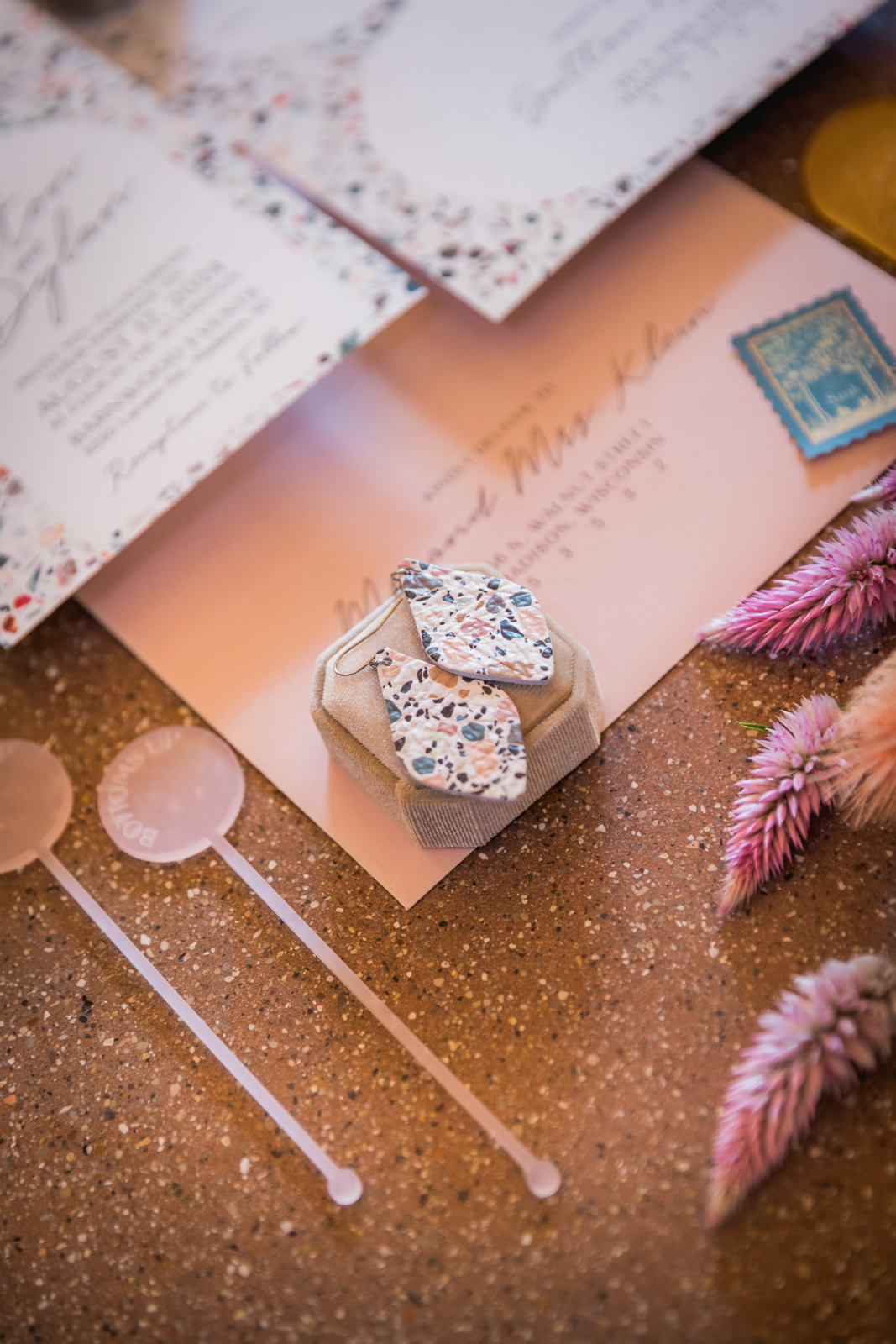LK Bridal Studio artfully designed a beautiful, modern Terrazzo-inspired invitation suite as well as adorable custom acrylic laser-cut stir sticks and drink tags perfect for all the celebratory sips of the evening!