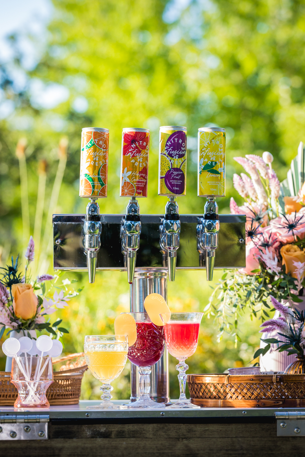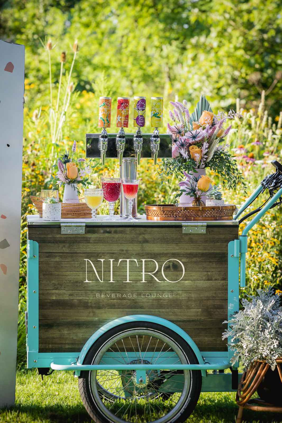 What’s more fun than serving delicious nitrogen-infused beverages during your wedding reception? Serving them from The Nitro Bike! This creative mobile beverage service from Nitro Beverage Lounge serves cold-pressed juices, tea, and coffees infused with nitrogen to be enjoyed with or without your favorite spirits for customized craft cocktails or mocktails at your special event.