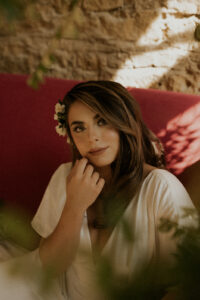B. Beauty Bar has our beautiful bride glowing with her timeless makeup look and voluminous blowout-style hair.