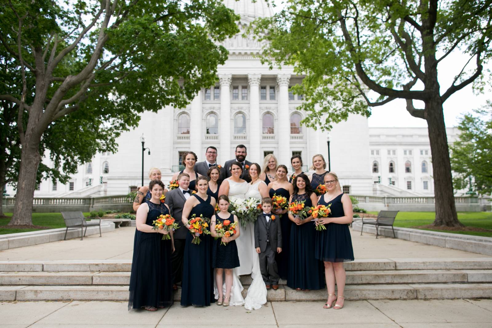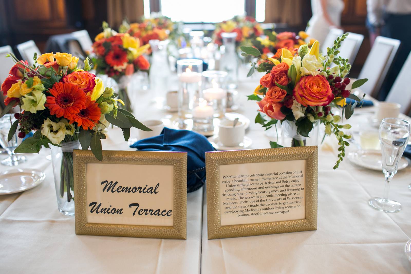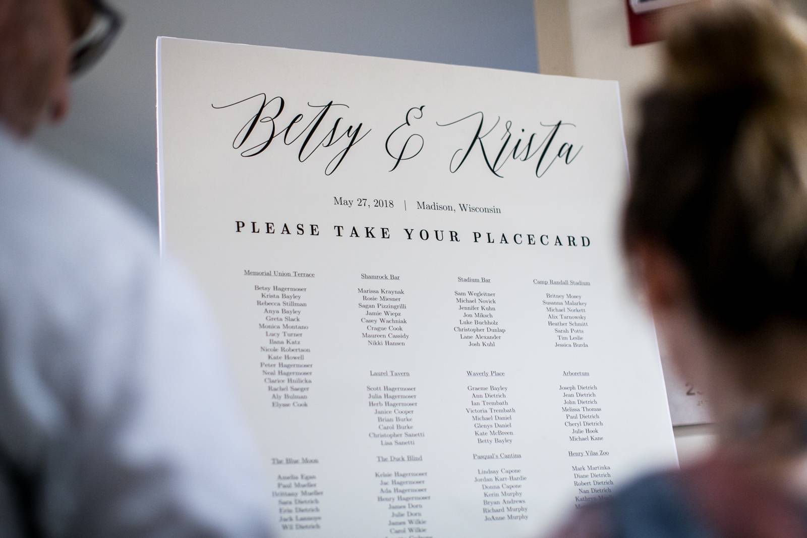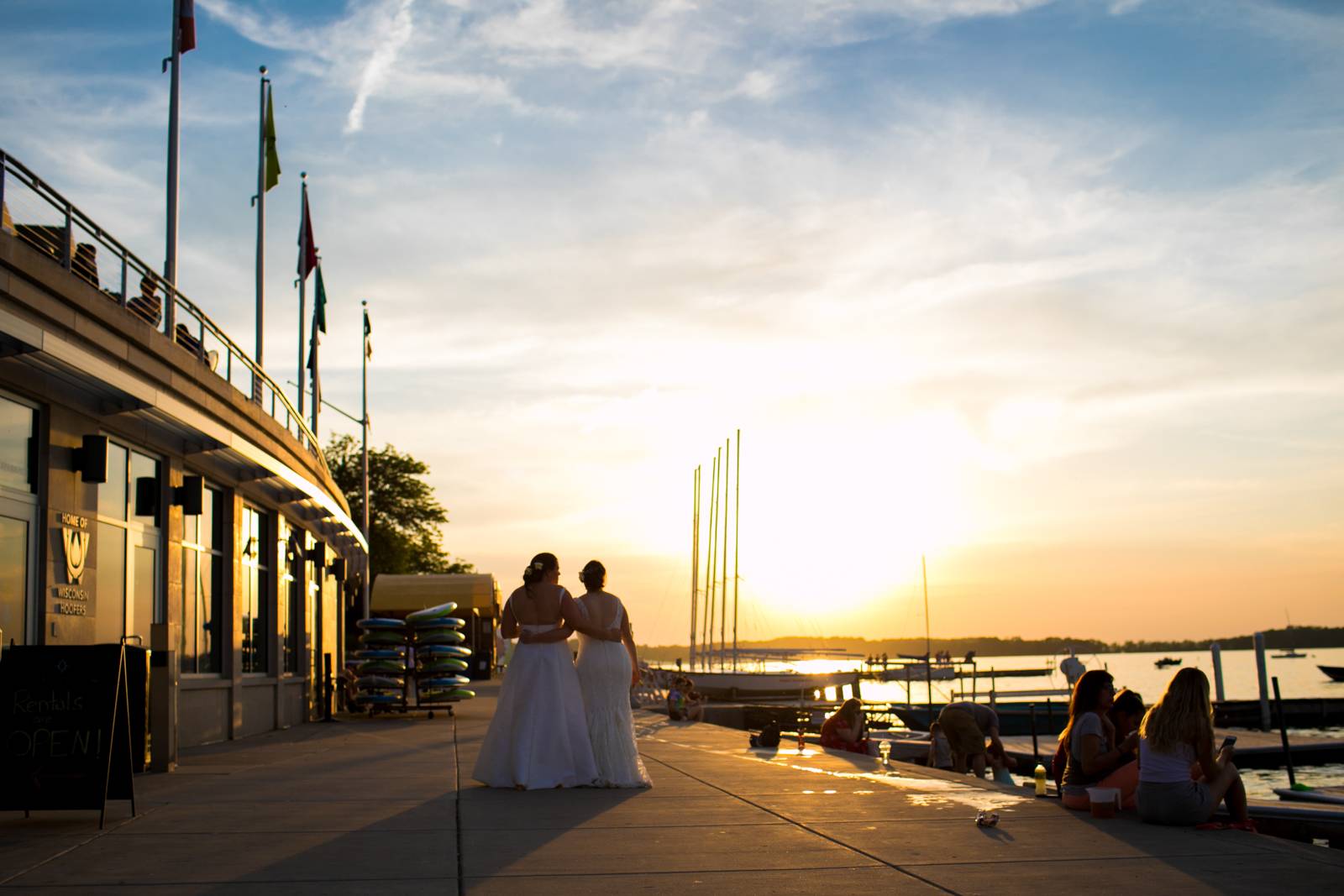 Krista and Betsy’s special day was full of color and true Madison flare. Captured stunningly by Maureen Cassidy Photography, this wedding was bright, personal, and even included a visit from Bucky the Badger, himself! Read on to see more from this Wisconsin wedding featuring some of our wonderful vendors such as Vera’s House of Bridals and Carl’s Cakes and Market Street Catering.