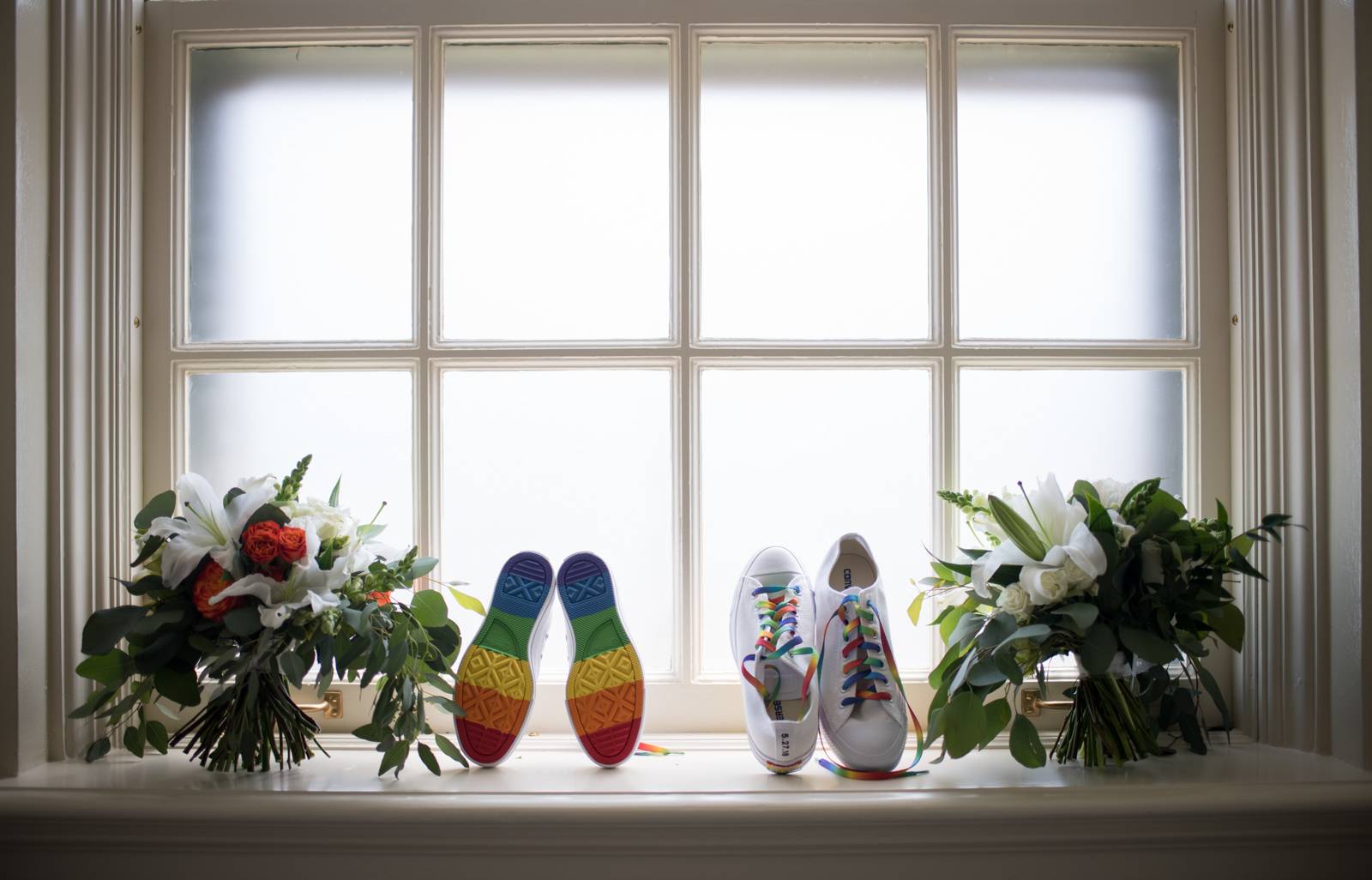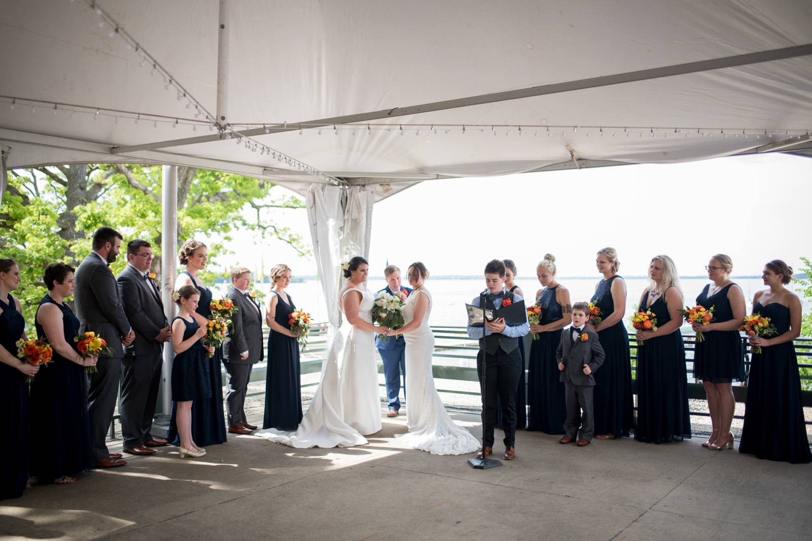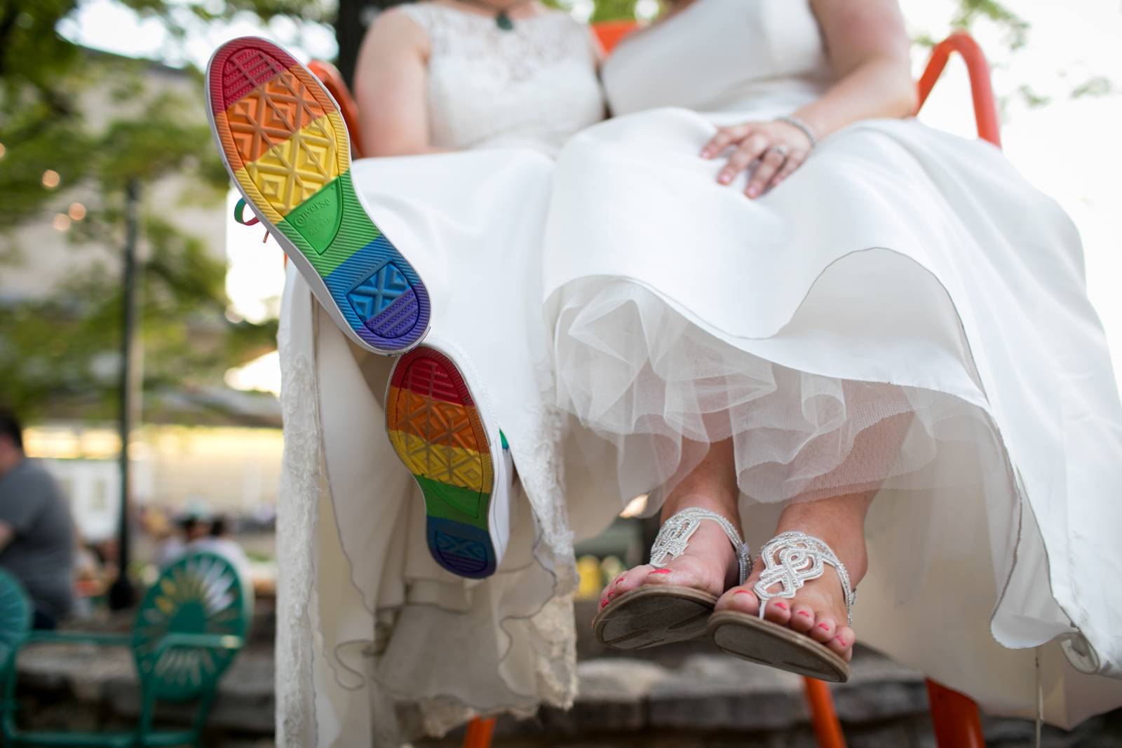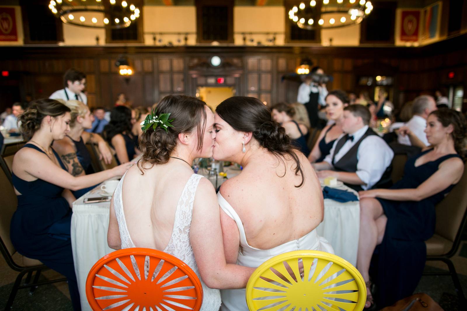 Krista and Betsy’s special day was full of color and true Madison flare. Captured stunningly by Maureen Cassidy Photography, this wedding was bright, personal, and even included a visit from Bucky the Badger, himself! Read on to see more from this Wisconsin wedding featuring some of our wonderful vendors such as Vera’s House of Bridals and Carl’s Cakes and Market Street Catering.