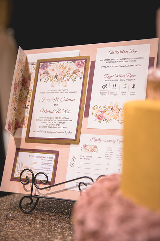 Coordination, Design + Floral: Surroundings Events & Floral | Paper Goods: Sugar River Stationers | Sweets: Gigi’s Cupcakes | Chair Rentals: Event Essentials | Dresses: Brides N’ Belles | Tux: Nedrebo’s Formalwear