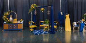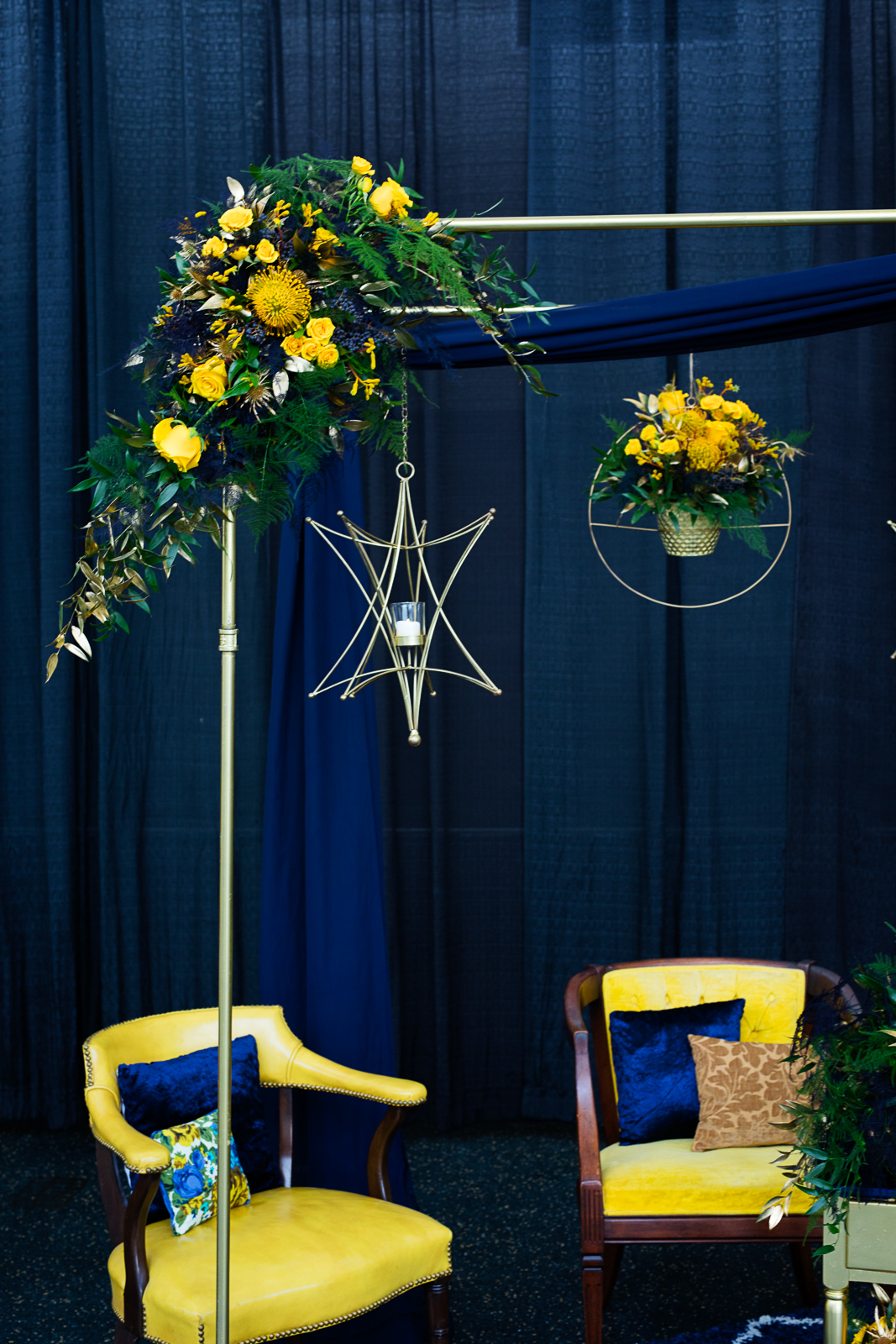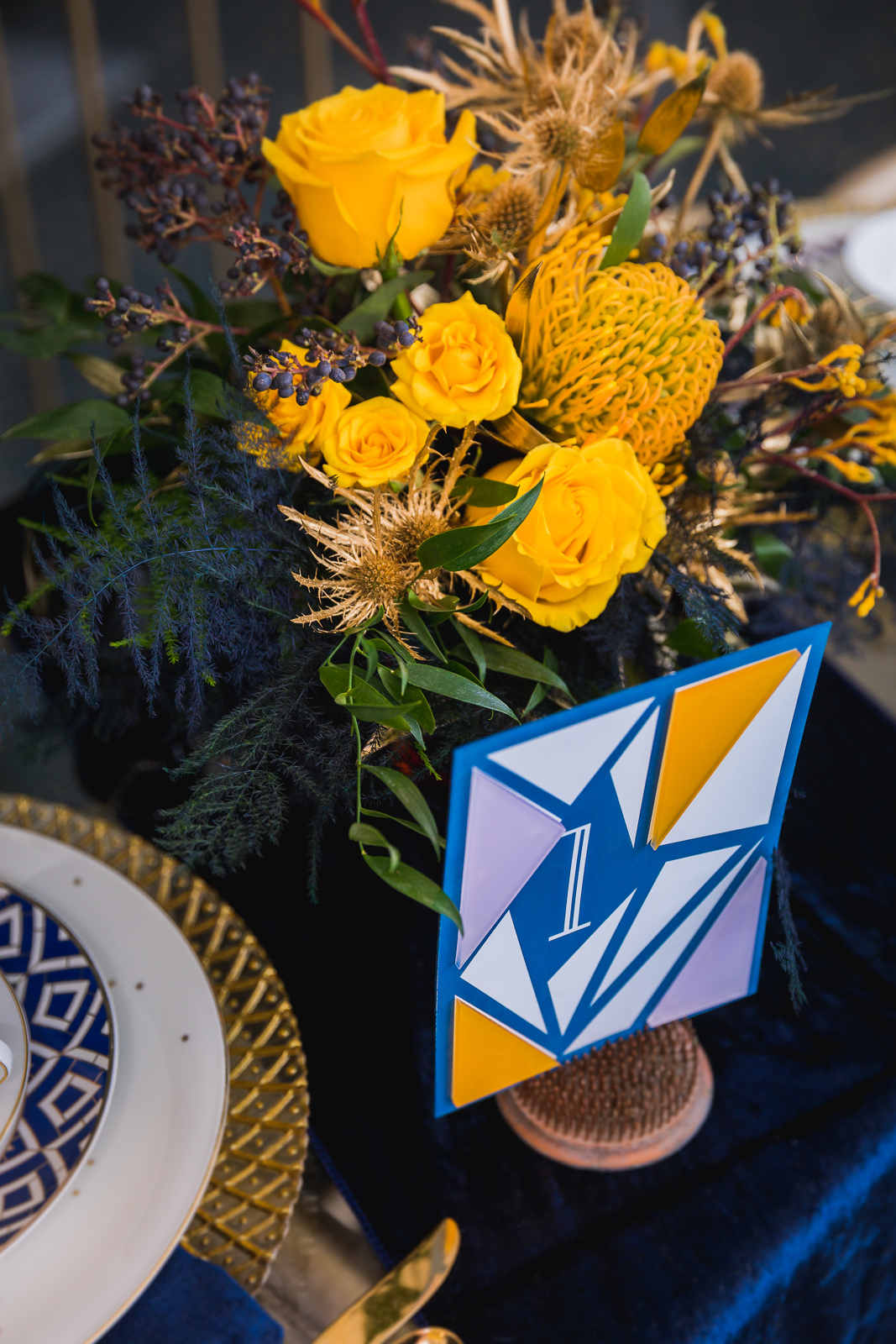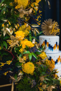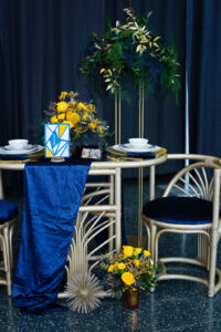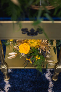 What happens when a talented team of Madison wedding pros gets together to create, collaborate, and celebrate their love for color and design? Get ready for gorgeous, because this dream team made it happen with this fun and fabulous wedding inspiration! Simply Glamorous Designs at Oregon Floral concepted this lovely, mid-century modern scape drenched in navy blues and mustard yellows. Scroll further and enjoy!