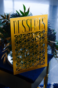 We adore this unique laser invitation create by LK Bridal Studio. Not only is the engraving spot on, the invite offers dimensional accents with white envelope addressing. Custom signs, cake toppers, and more can be found this scape.