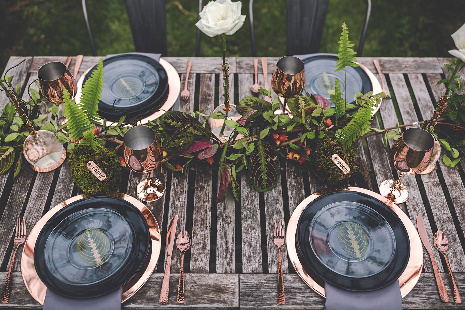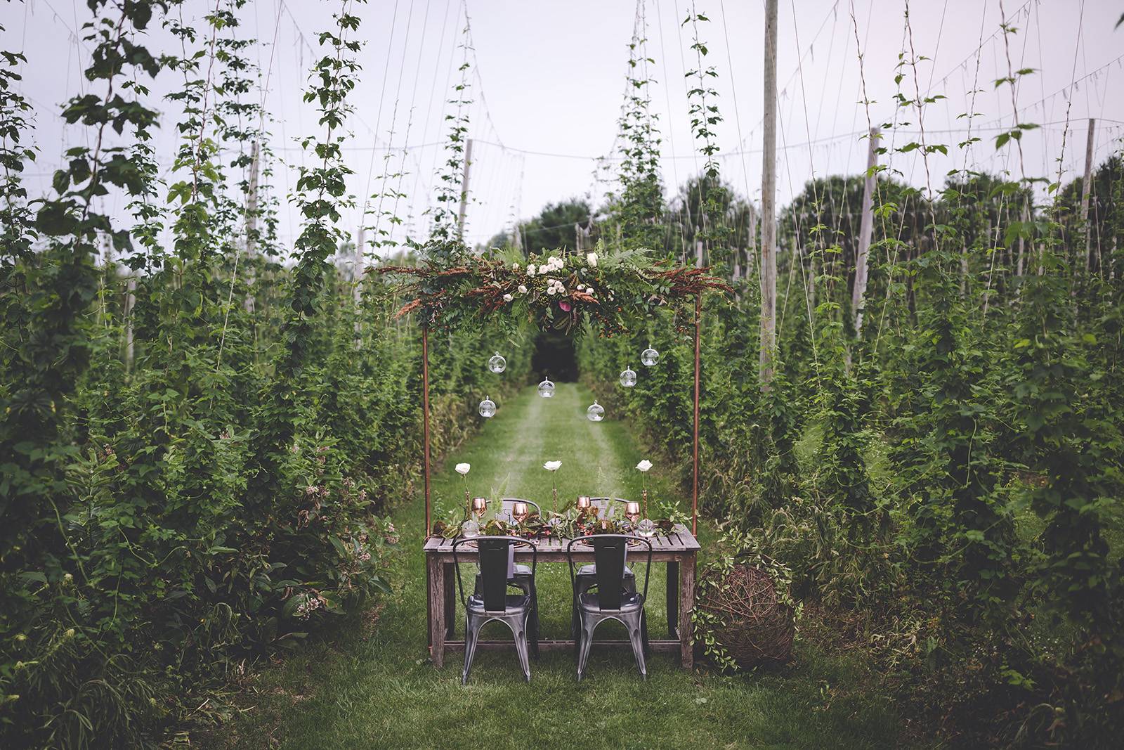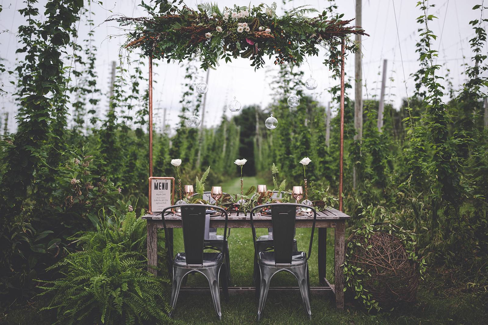 As I’m sure you all know, copper has been all the rage this wedding season. We’ll always love gold but copper is gold’s little sister that is here to stay for a while and when you peek at this shoot, you’ll see why. This drop-dead gorgeous wedding scape is for the books, (literally, this design made the front cover of our 2018 issue) with tons of copper-infused elements and lots of lush greenery designed by The Flower Studio. And can we talk about that custom-made copper arch and menu sign? The most glam cake with copper foil from Carl’s Cakes & Market Street Catering, a vintage escort card display from Paperworks Design Co. all nestled in a bountiful hops garden we never knew existed at The Oaks Golf Course. With East Elm Photography behind the lens, let this gallery be your playbook for outdoor wedding inspiration, without a doubt.