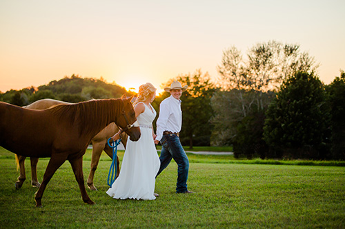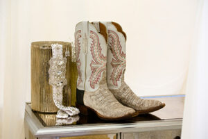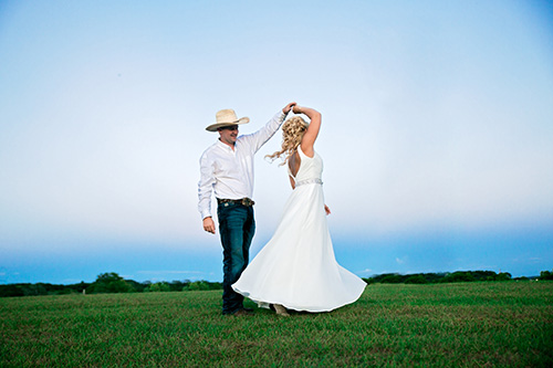 TELL US ABOUT YOUR DRESS: I’m the biggest tom boy, no-frills girl. So I wanted a dress that was simple and beautiful but showed the real me. When we went to look at dresses I didn’t want price to determine my choice as I thought I could always get something similar. Turns out my choice was very inexpensive and was very “me”. It was a Modern Maid brand. It was a simple dress in Ivory with an embellished belt and some tear drop earrings that my step mother picked out complete with my Lucchese white crocodile square toe cowboy boots was perfect. I was comfortable but felt gorgeous all day and night.