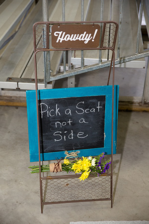WERE THERE ANY PERSONAL TOUCHES OR DIY ELEMENTS? Our wedding had so many of these elements as we are a young couple on a budget but these touches truly made it special. My dad really brought out his creative side with building things for our wedding with his good friend Vic Whalen. They built a huge chalkboard sign with antlers for our watering hole sign. They built a saddle rack that my grandpa’s saddle was on for our card box. They built picket board fencing for d�cor and an archway that went over my horses. We used some of my ropes from rodeo competition as decorations also. My step mom added her western touch of talent to our venue and we really couldn’t have asked for better after the wash out of our venue two days prior. There was so much thought and love behind each aspect of our wedding.