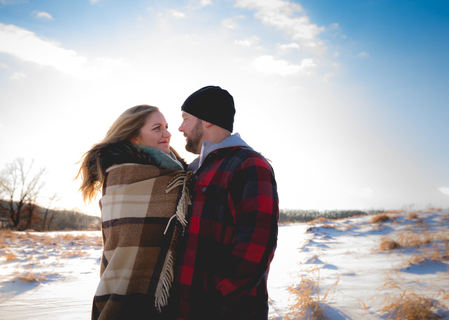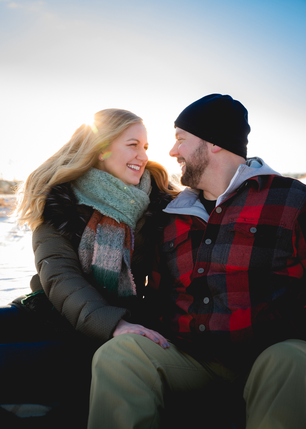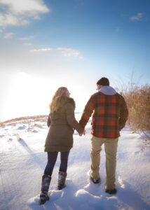 WHAT WAS YOUR VISION FOR YOUR ENGAGEMENT PHOTOS? The idea was for a cozy winter shoot. We were hoping for snow and sunshine, and we got both! Our session took place in Indian Lake County Park on a sunny winter day in January. The Wedding Flashers did an amazing job with our photos.