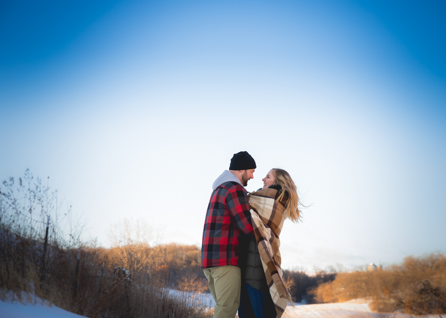 The Wedding Flashers bring us a snowy, winter engagement session for a couple looking to highlight the natural beauty of Wisconsin. Taken in Indian Lake County Park, these photos showcase a couple deep in love and the versatility of the natural landscape to provide a stunning background at all times of the year. The contrast of the untouched snow and the bright sun glistening upon it, make the perfect backdrop for this sweet couple who plans to celebrate their nuptials in the warmest season of our breathtaking state. Read more about their plans down below!