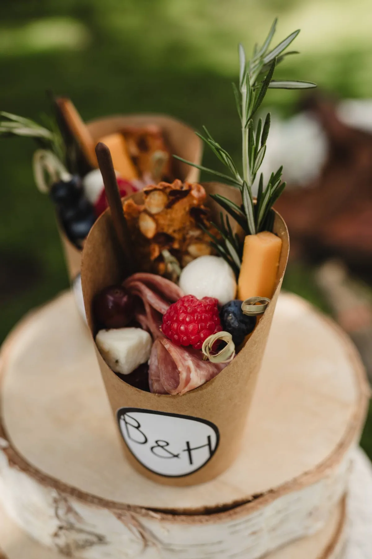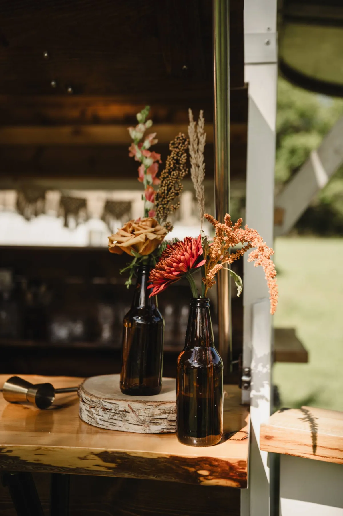 Buck and Honey’s Catering showcased a variety of tasty small bites, including charcuterie cups, pulled pork sandwiches on pretzel buns, vegetable skewers, and mini berry tarts. The food was accompanied by bar service from The Mane Tap, a charming mobile bar with rustic wood paneling and space for décor and florals.
