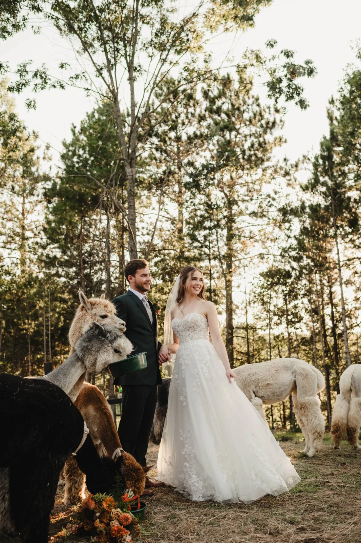 Casacampo Alpaca Ranch is an inclusive venue in Columbia County, Wisconsin, offering lodging for up to 30 guests, space for private events, and–of course–a gorgeous setting for weddings. The ranch property is scenic and serene, with space for indoor and outdoor celebrations, and plenty of portrait opportunities.