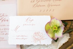 Windswept Design Studio’s dreamy fine-art wedding invitations set the scene for this romantic shoot through her signature hand-painted watercolor style and brush lettering. We love the elegance of a torn edge detail as well!