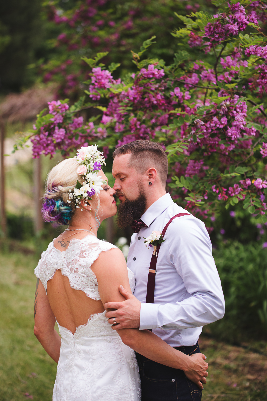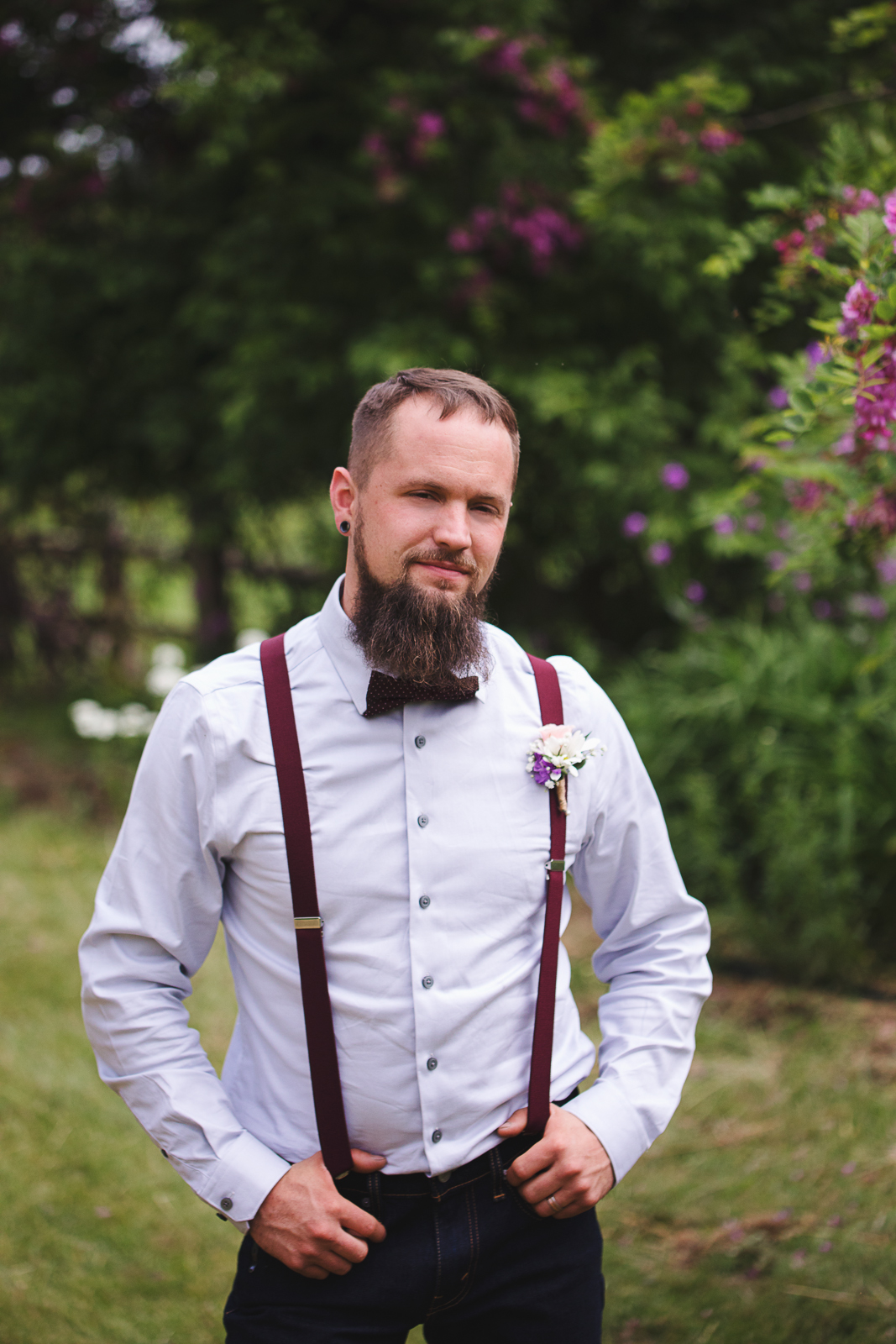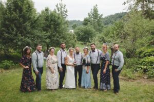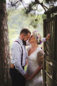 TELL US ABOUT FINDING YOUR BRIDAL GOWN, SUIT/TUX OR OTHER WEDDING DAY ATTIRE: We wanted to keep it simple. I’m a big second-hand shopper, so spending thousands of dollars just seemed silly to me. I found my dress on Buy Sell Trade, and Jake and his groomsmen wore jeans and a dress shirt. My bridesmaids had on simple wrap dresses from Amazon. Neither of us wanted our friends to have to spend a ton of money to be apart of our big day!