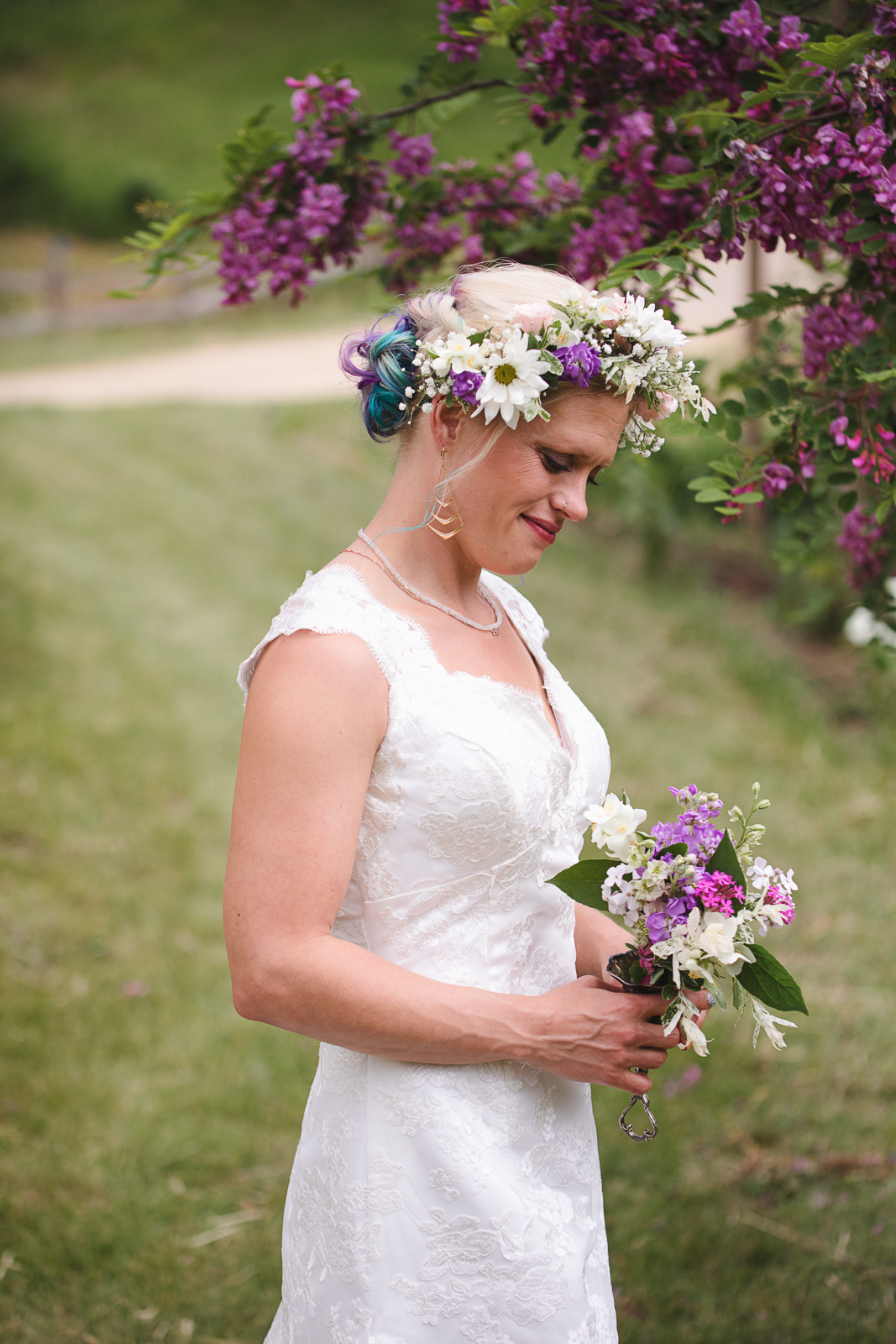 DESCRIBE YOUR WEDDING FLOWERS: My uncle is a master gardener, so we actually picked all our flowers from his gardens! All of us girls had flower crowns, which was a beautiful floral touch as well.