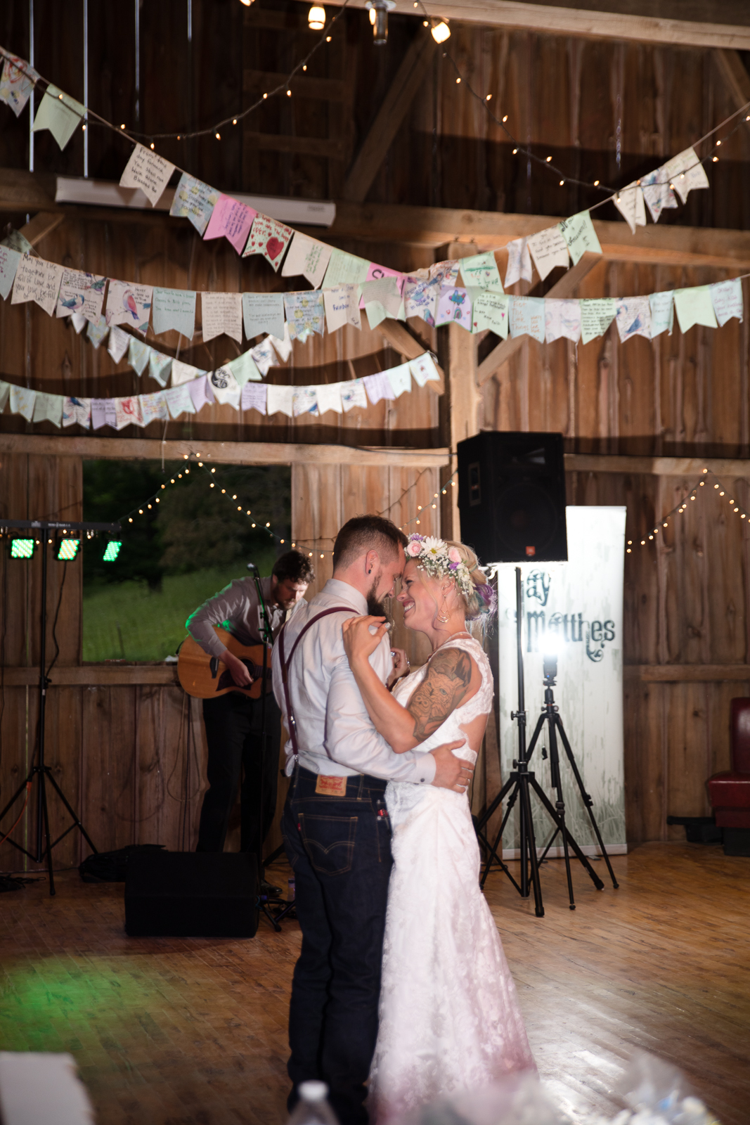 WERE THERE ANY PERSONAL TOUCHES OR DIY ELEMENTS? Oh yes! We decided to have the wedding at my uncle’s farm, where Jake proposed and was the location of your engagement session. It is a beautiful little hobby farm and formerly belonged to my Great Aunt Evy. The barn has a small dance floor that my uncle made for his bi-yearly barn dances. We did so much work and cleaning in it to make it perfect for our big day! After we accomplished all that work together, never getting upset working as a team, I knew Jake, and I could do anything. It will be something we will remember forever.