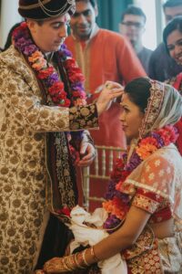 Nima says, “David custom designed the Mangalsutra (the necklace the bride receives from the groom signifying marriage in the Hindu wedding) at Bailey’s Fine Jewelry for me. I had no idea what it was going to look like until the actual ceremony! He spent weeks with Bailey’s designer to create the piece; it’s very special to me.”