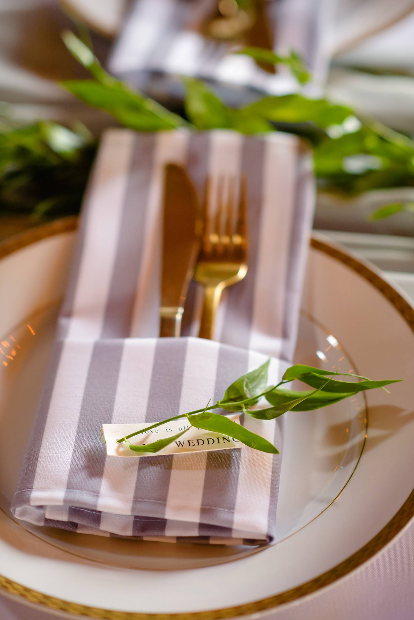 PLATED: Guests are seated, typically at a designated table, and served a plated meal.Entrée options are provided within the invitation ensemble. Escort or place cards for each guest indicating a certain color or symbol for the meal they choose will need to be made and are often part of the table décor. This is the most formal reception choice and also the most time consuming for the couple as they will need to assign every guest to a designated table in addition to making out an escort or place card.
