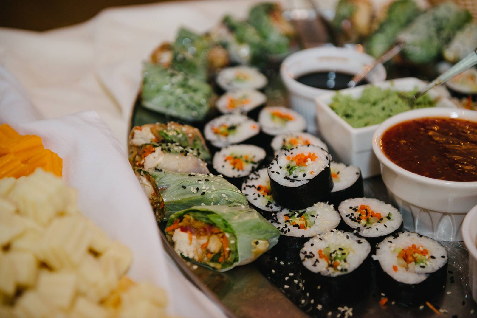 INTERACTIVE FOOD STATIONS: Food stations are mini-buffets, with each offering something special, such as a chef-attended meat carving station, pasta or potato bar, or an ethnic or themed station. Think sushi, tacos + tequila, tapas + sangria. These are fun alternatives, cater to your tastes, and can offer a variety of options for the ultimate guest experience.