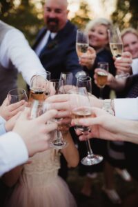 COCKTAILS & HORS D’OEUVRES: This can be elegant and trendy, but make sure not to schedule this around the dinner hour if this is all that you are serving. You don’t want your guests to be hungry, so it’s best to add this to the evening festivities before the main meal is served. This is a great opportunity to mingle with your guests, or this can keep guests busy while the couple is off taking photos. Consider signature cocktails to personalize your event.