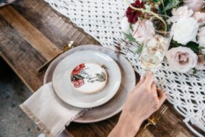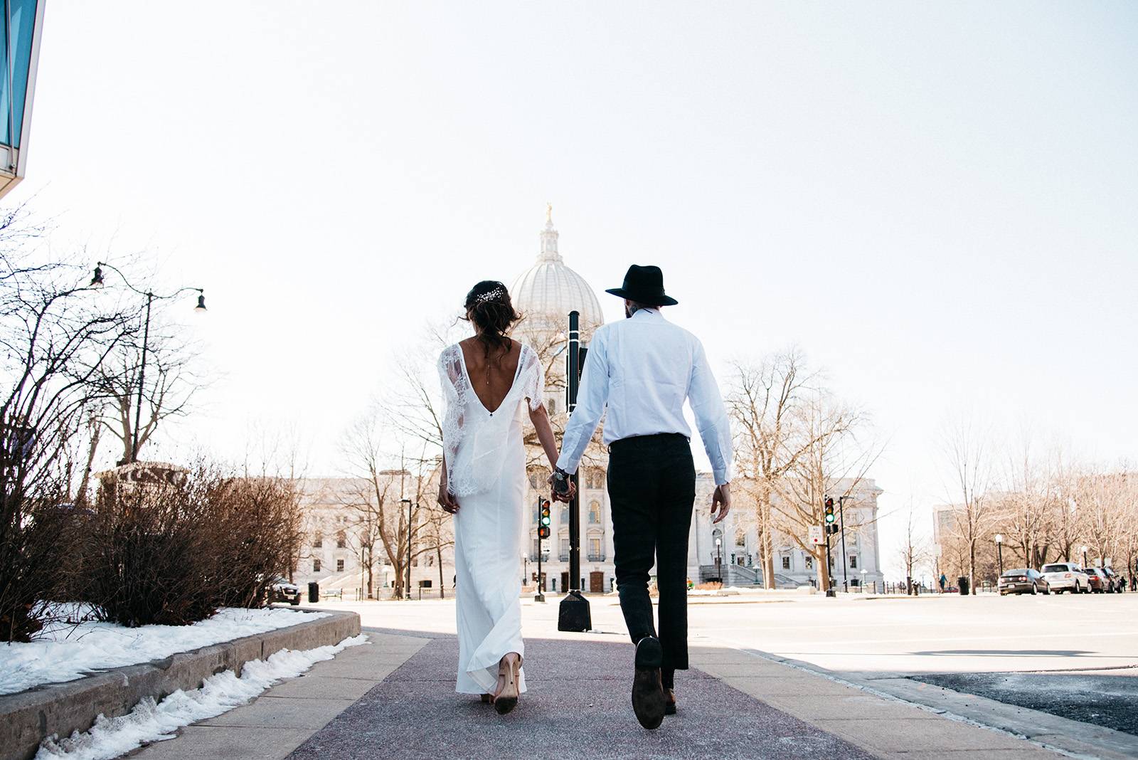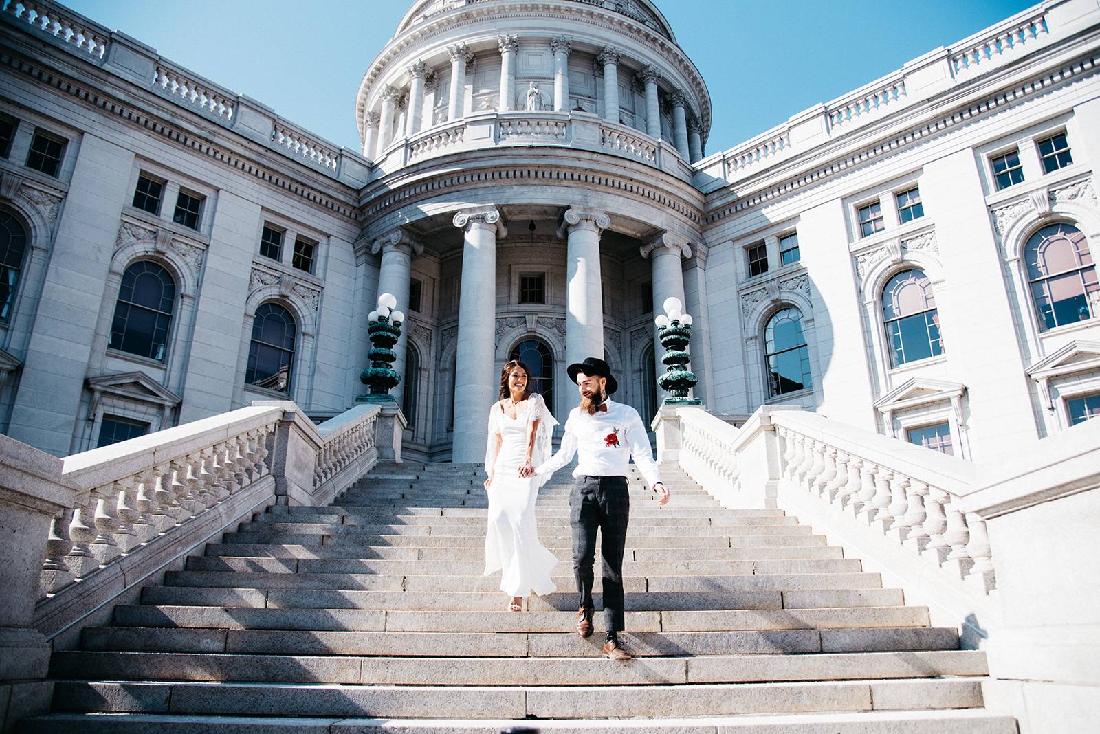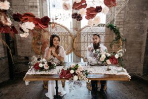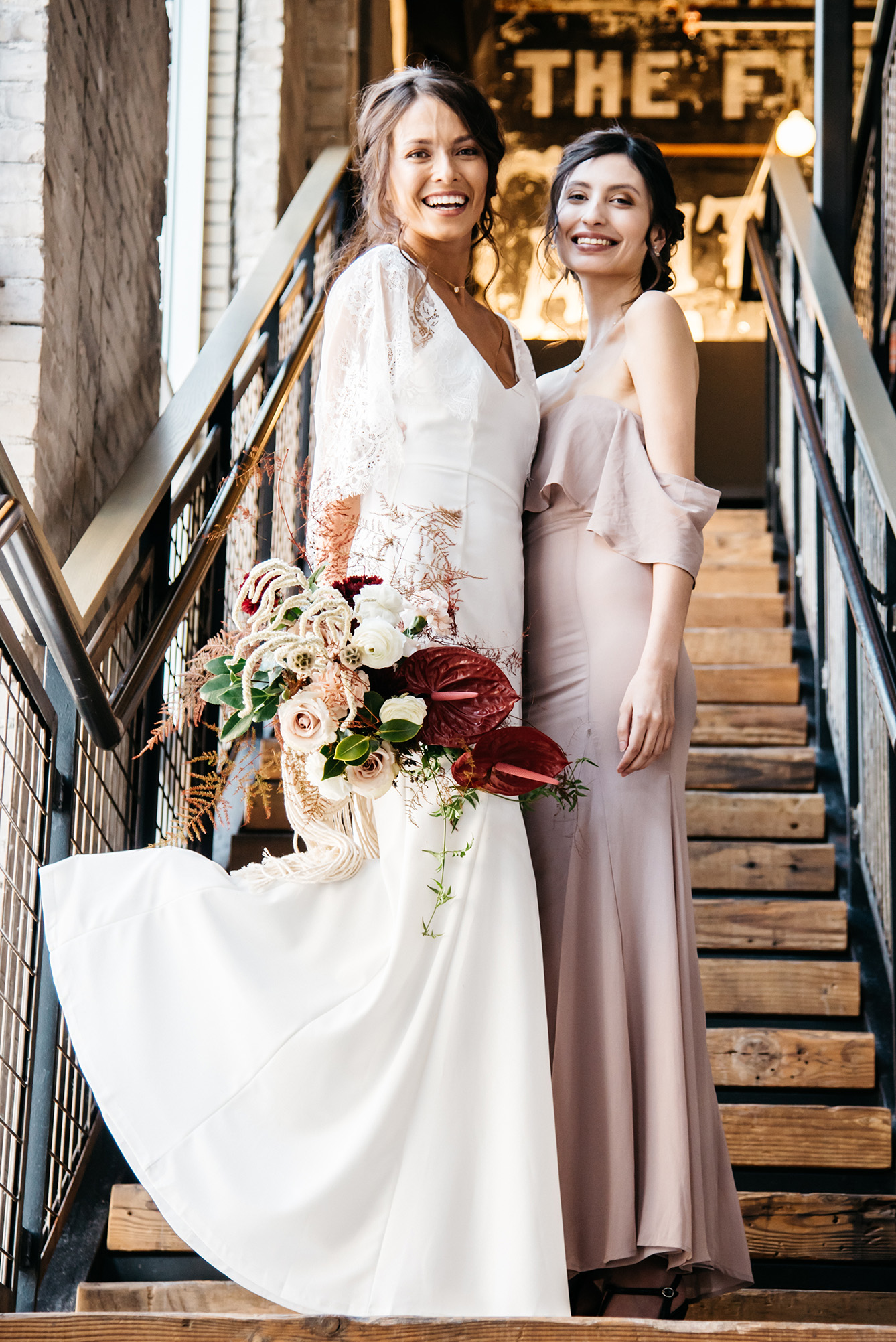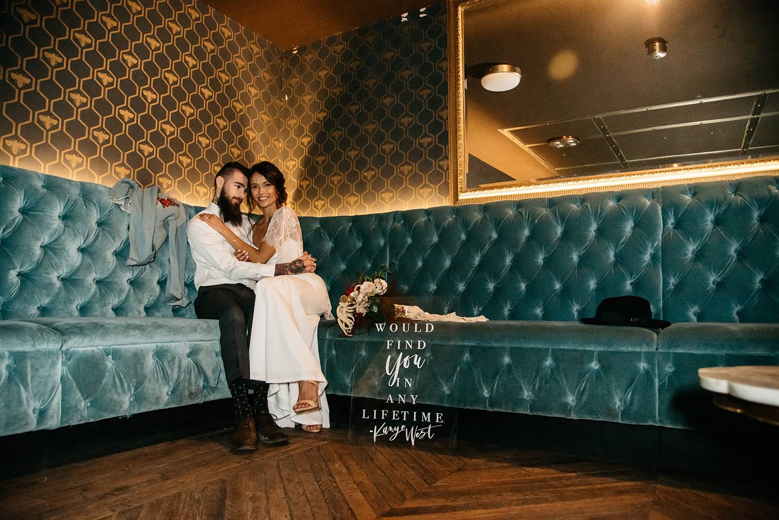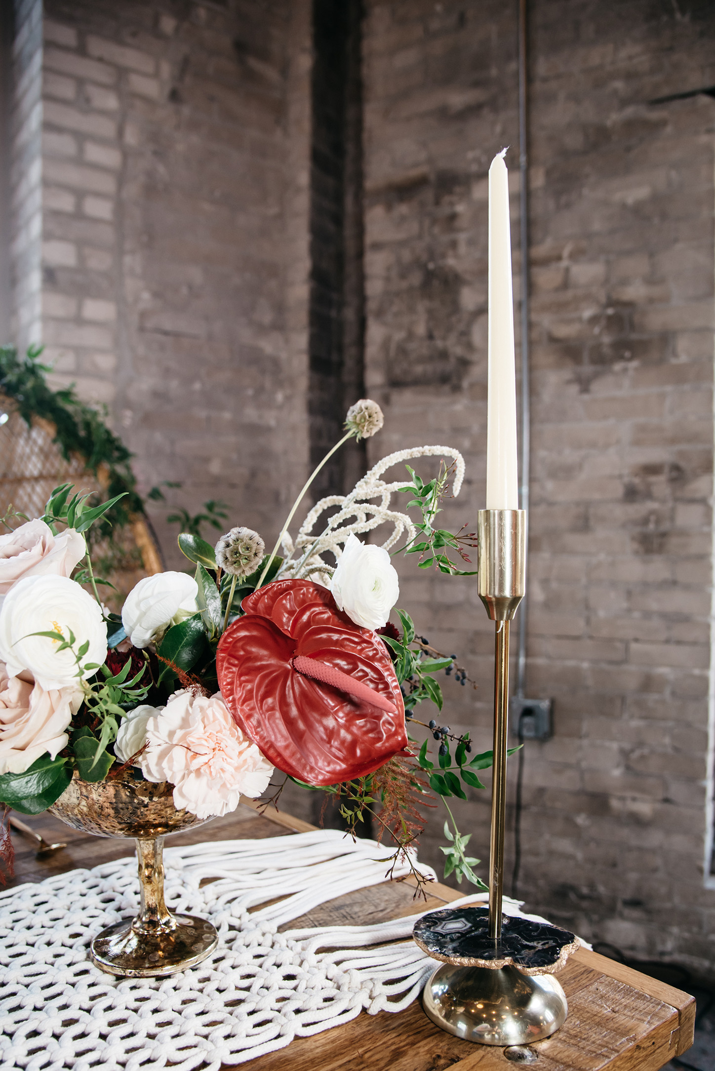 Christina from Kis Design & Events says, “The goal was to showcase some original bohemian/industrial aspects to help paint a picture of this couple’s personal style and most importantly, provide some fresh ideas and inspiration for brides tying the knot. The couple first “exchanged vows” at the Capitol courthouse and then ventured to their favorite hip restaurant, Lucille, once a historic bank building (vault lounge in the lower level for after-parties) turned specialty pizza, and craft cocktail bar.”