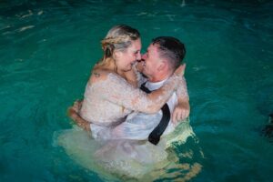 WHAT WAS YOUR FAVORITE MOMENT FROM YOUR WEDDING? The change to a smaller wedding allowed us to splurge on a hot air balloon ride with our family and friends. It was an amazing experience! And if I can pick a second favorite moment, it would be jumping into the pool at the end of the night with my groom and wedding party! It was a much needed COVID-19 stress reliever.