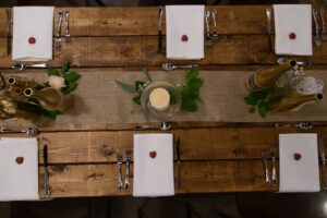 DID YOU USE ANY SPECIALTY TABLES, CHAIRS, LINENS OR DINNERWARE? Vennebu Hill provided all the chairs, linens, glassware and dinnerware. They did have two chairs that were King and Queen (I believe) that we sat in.