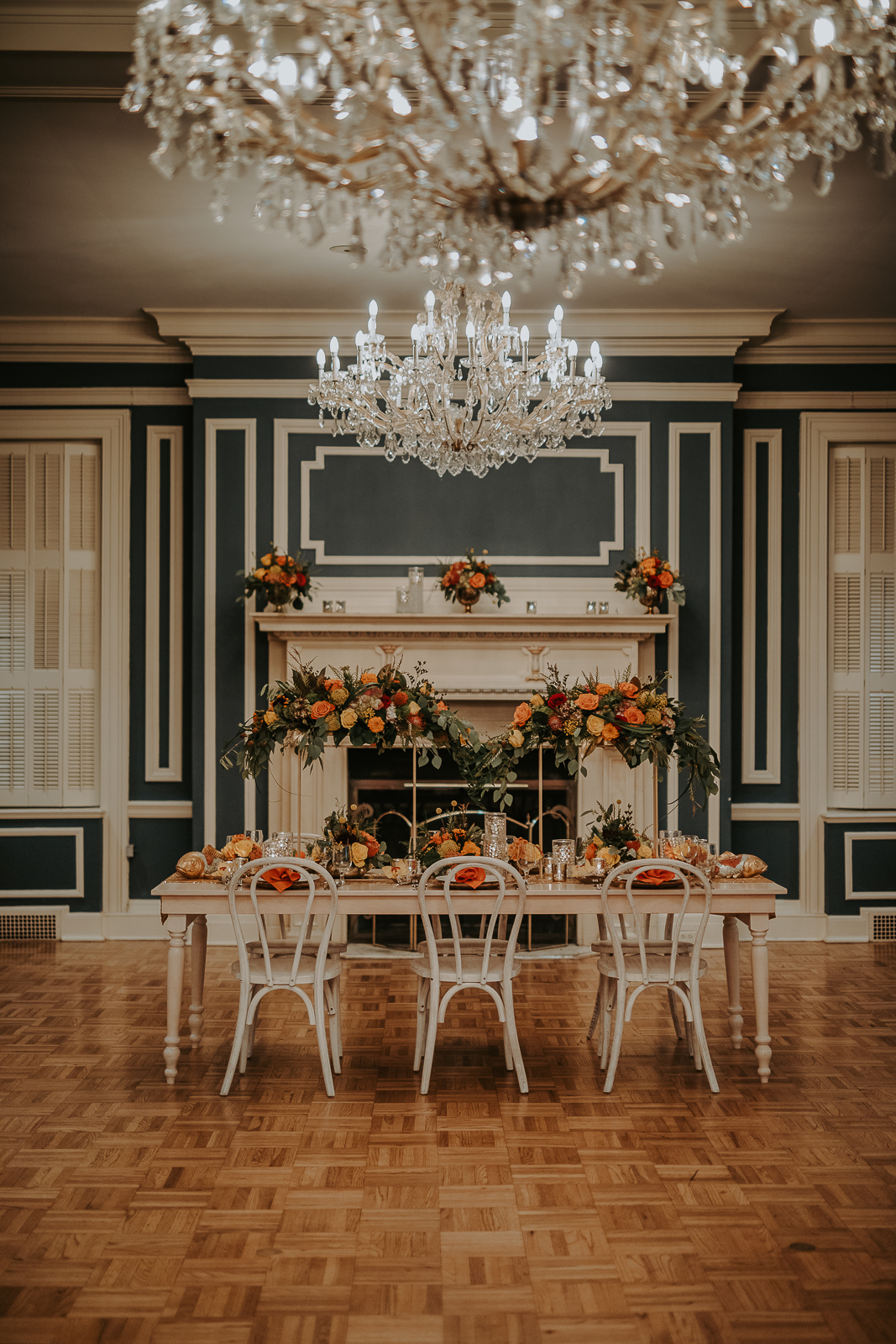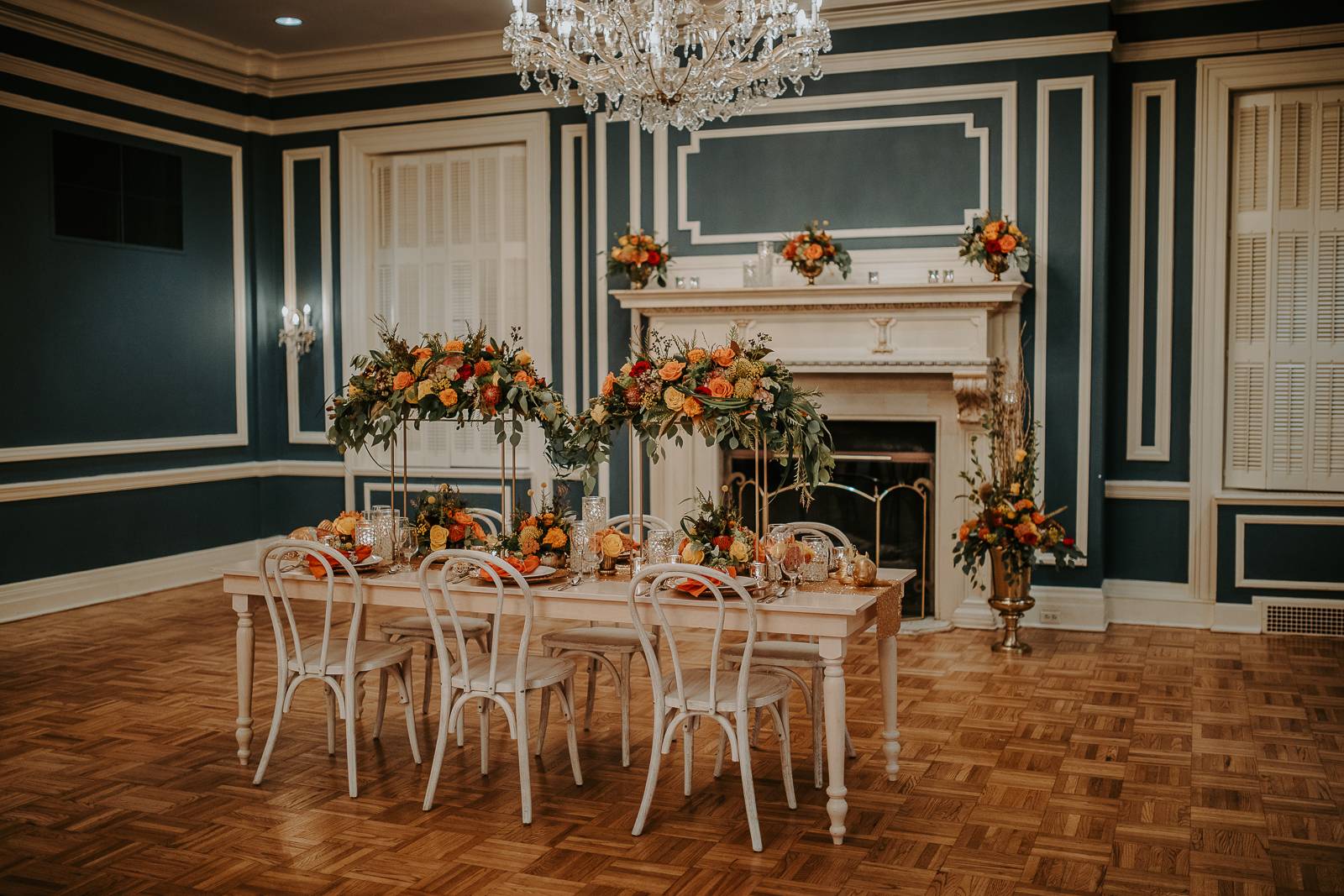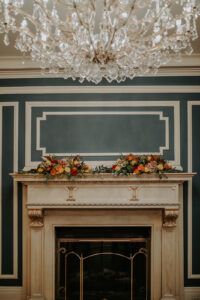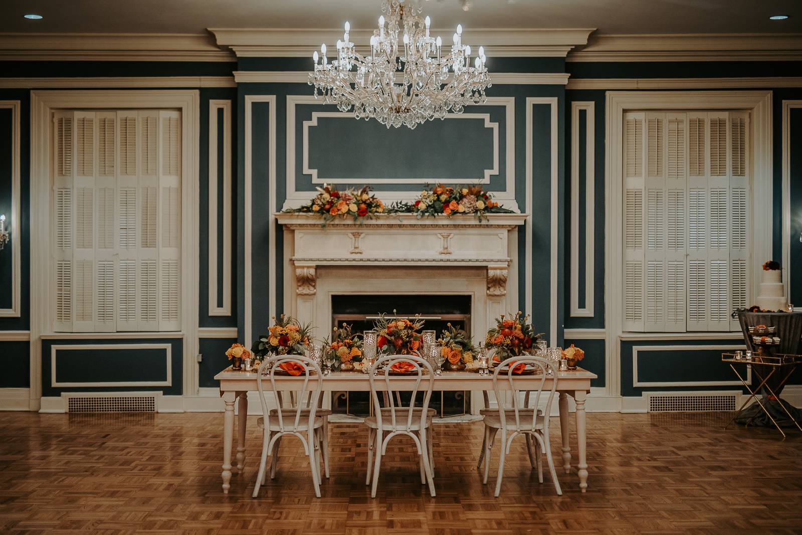 The Madison Club is a beautiful, historic building with ornate architecture that offers the perfect elegant setting for your wedding day. Their decorative light fixtures, fireplace, molding, and other detailed features make their appearance in today’s colorful and classy wedding scape design.