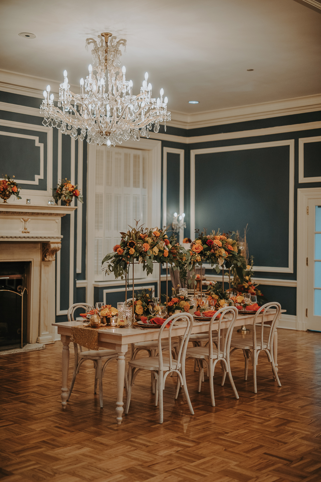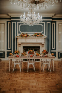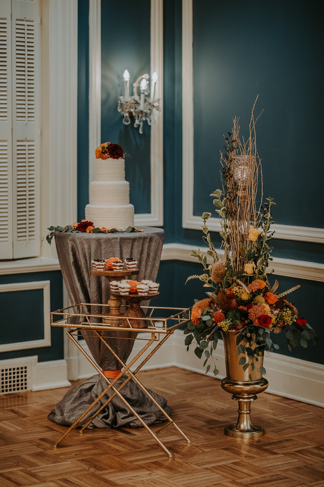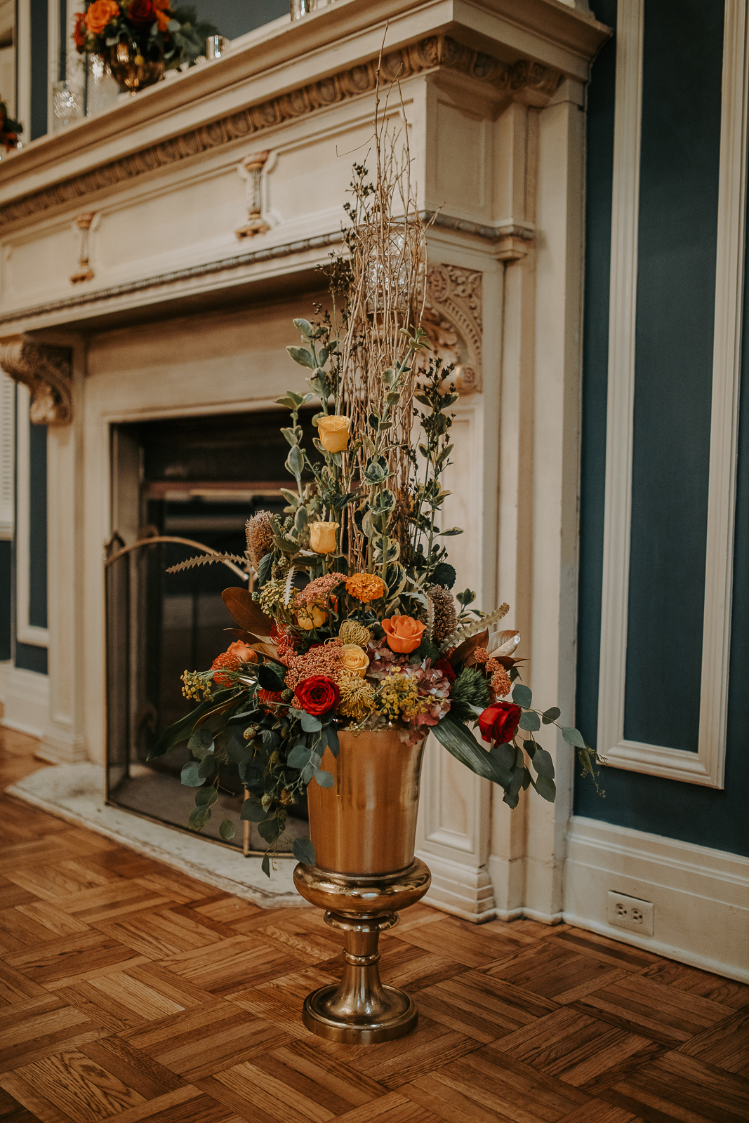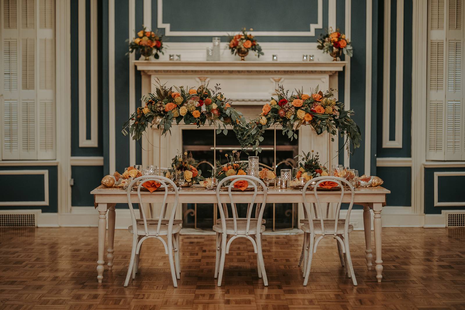 The Madison Club is a beautiful, historic building with ornate architecture that offers the perfect elegant setting for your wedding day. Their decorative light fixtures, fireplace, molding, and other detailed features make their appearance in today’s colorful and classy wedding scape design.