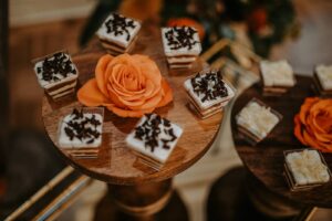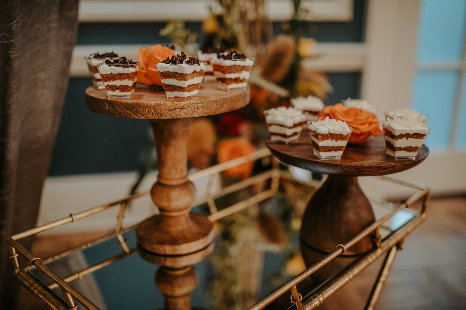 Craig’s Cake Shop’s treats are not only creatively crafted and designed, but they are incredibly delicious guest pleasers. A modern and elegant three-tiered cake along with mini trifle desserts are a tasty and classy spread for today’s styled wedding scape.