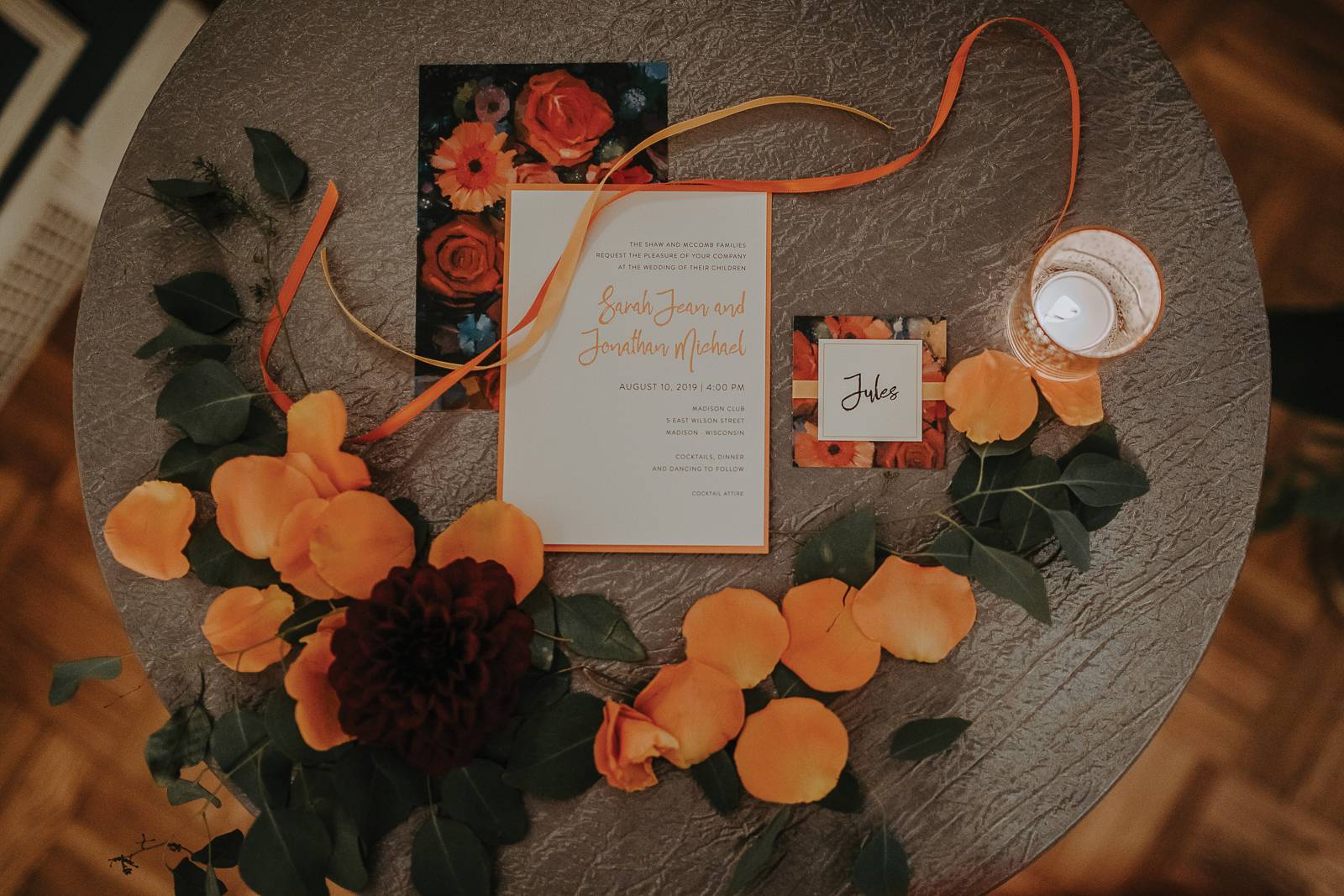 With coordination, design, and florals by Surroundings Events & Floral, this elegant, summery, and botanical wedding scape oasis is sure to lift some spirits. Hosted by The Madison Club, this collaborated affair features many of our talented vendors, such as Dave Stremikis Photography, Sugar River Stationers, Craig's Cake Shop, and A La Crate Rentals to create a bright, colorful, and classy wedding scene. Full of summer wedding inspiration, enjoy each elegant detail this stunning scape has to offer below.