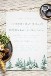 winter wedding invitations, winter wedding invite, pine tree invitations, evergreen invitations, chr