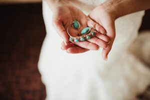 WHAT WAS YOUR WEDDING COLOR PALETTE? Ivory, gray, cappuccino, and turquoise.