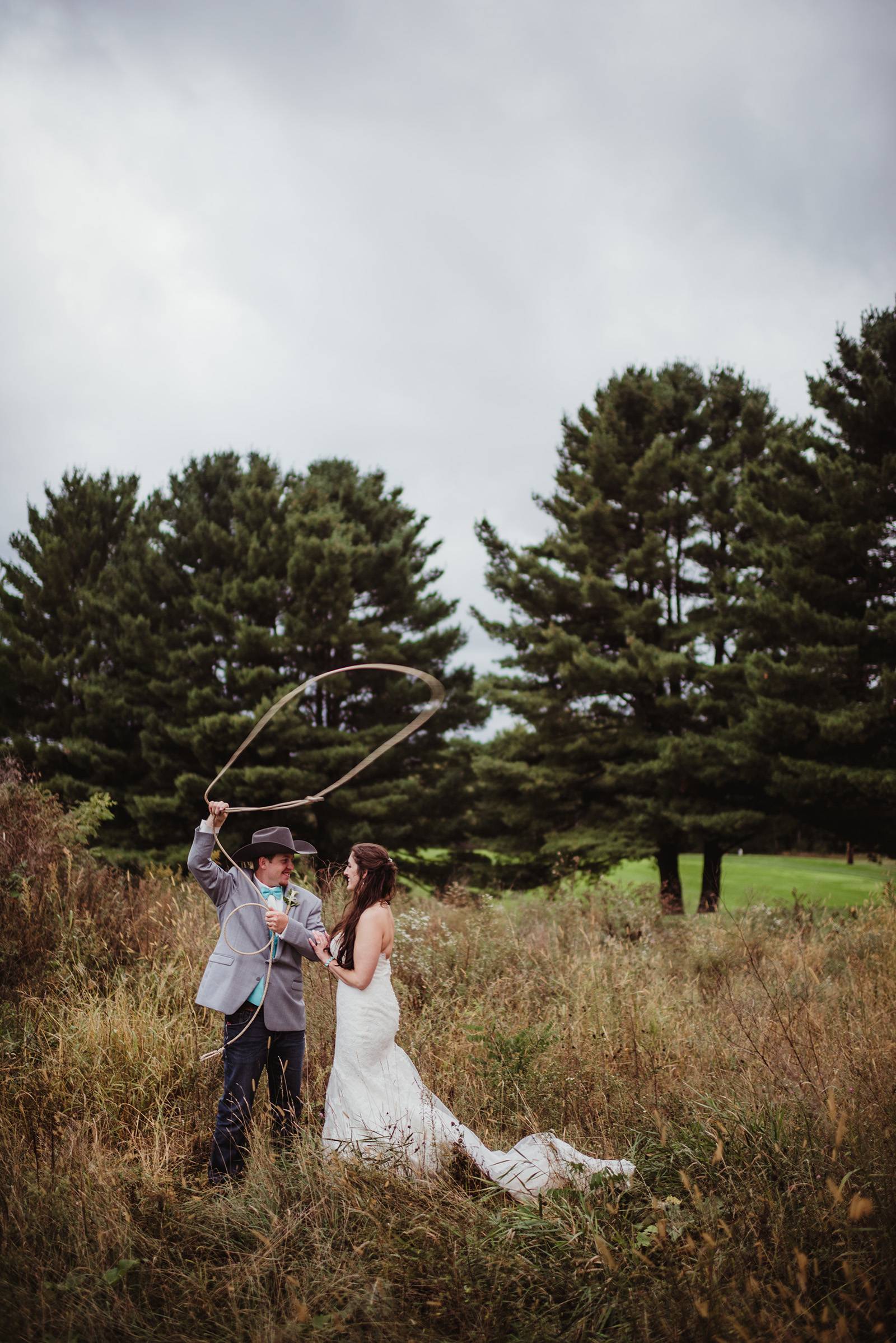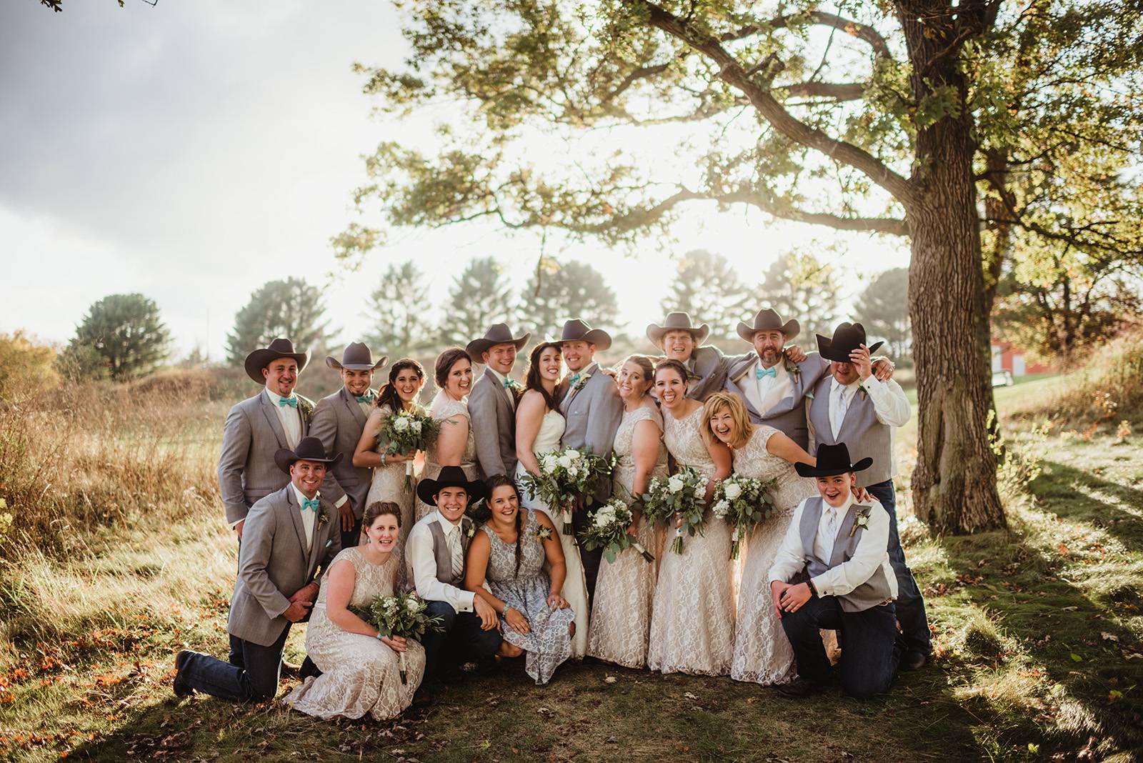 Once upon a time, there were two farmer kids who grew up together and fell in love around horses while competing at rodeos. I’m not sure what’s cuter – their love story or their beautiful outdoor tented wedding at Wisconsin Dells wedding venue, Chula Vista Resort and how they tied their love for the rodeo into it. With cowboy /cowgirl details in the boots, hats, belts to the cake, custom invitations, escort cards and signs by LK Bridal Studio and the dreamiest garden florals. We invite you to indulge in every last photo of this beautiful gallery by Twig & Olive Photography because this elegant Western rodeo wedding is not to be missed!