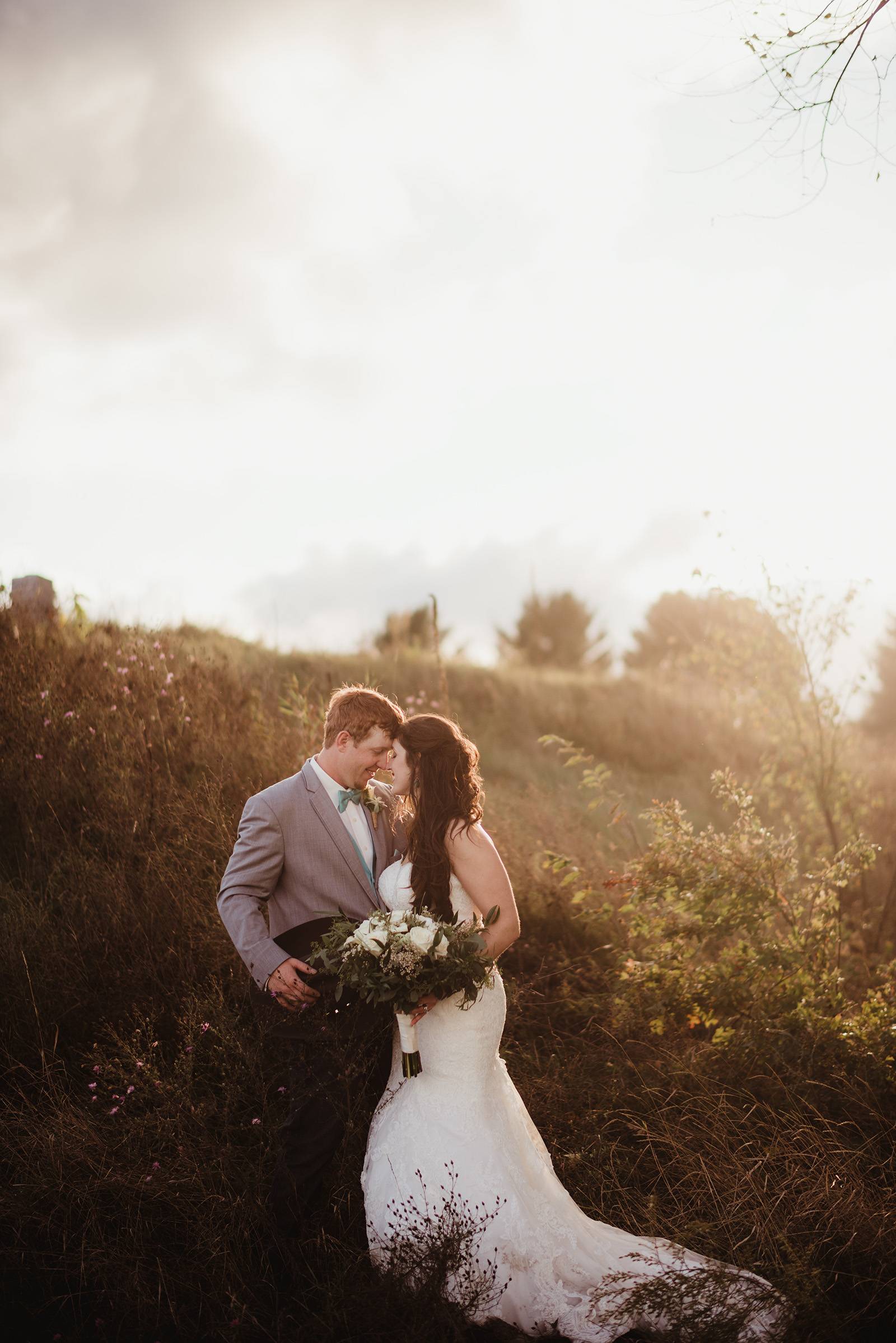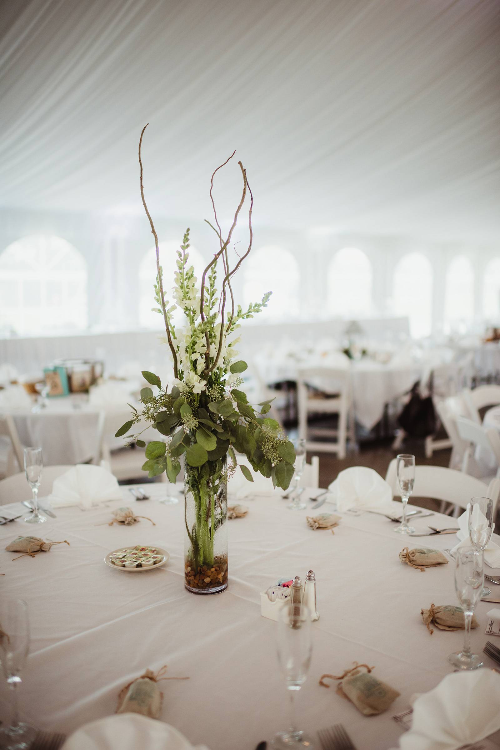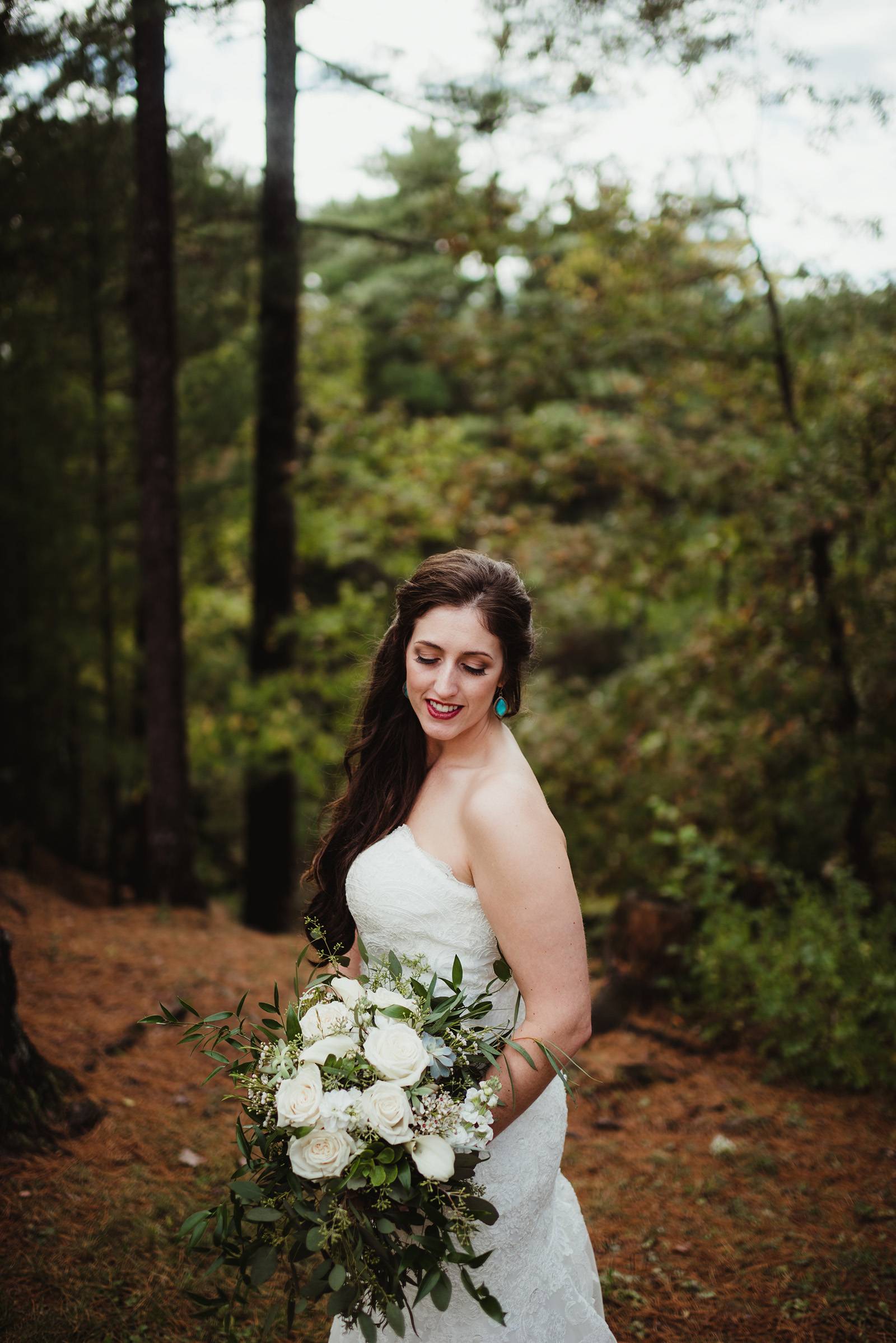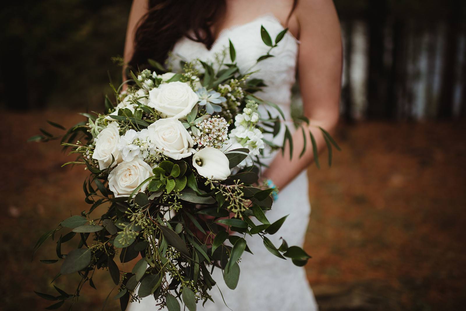DESCRIBE YOUR WEDDING FLOWERS: Garden inspired bohemian bouquets in white and matte greens with a touch of whimsical succulents.