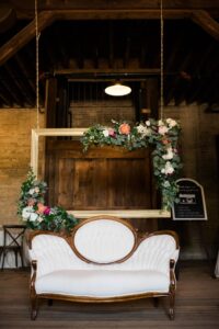 DID YOU USE ANY SPECIALTY LINENS, CHAIRS, DINNERWARE OR GLASSWARE? We loved all the vintage sofas and lounges we rented from A La Crate Vintage Rentals.