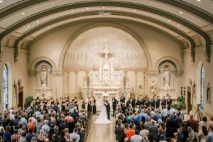 Amanda and Lucas’s ceremony at Saint Luke Catholic Church was filled with friends and family against a backdrop of soaring ceilings, statues, stained glass, and stunning arches–and set to live music by Yahara Stings Quartet. Amanda writes, “To make our walk down the aisle feel intimate, we asked everyone in the church to face forward briefly, so it felt like it was just Luke and I at that moment–a memory I’ll forever cherish.”