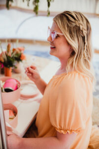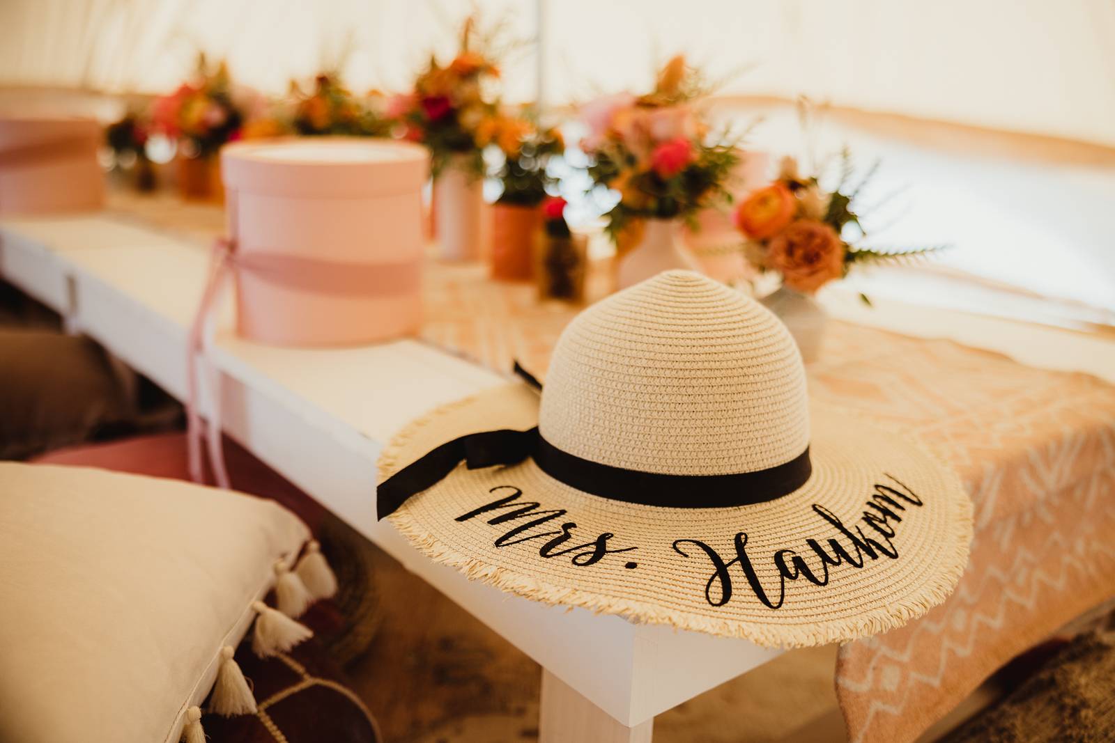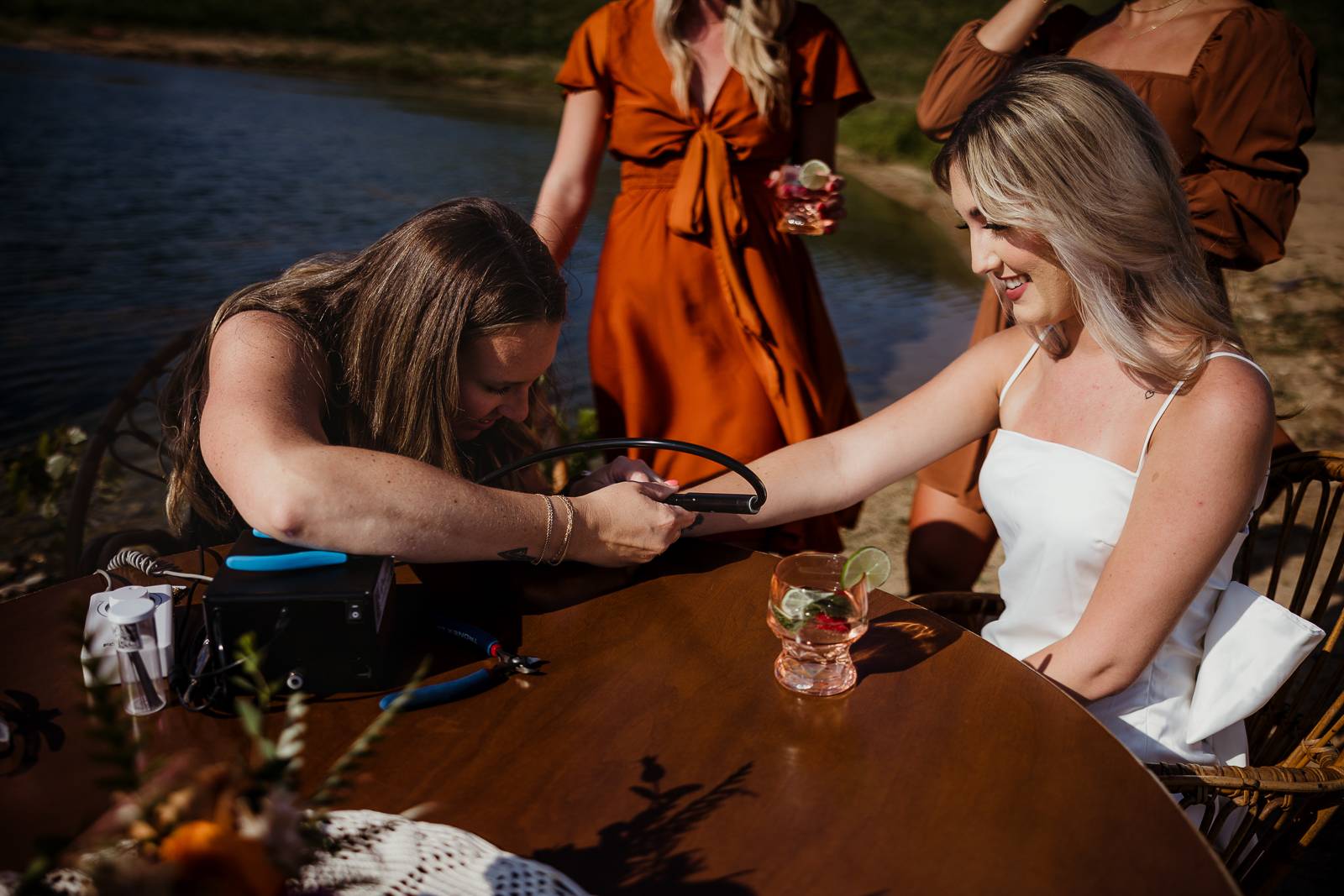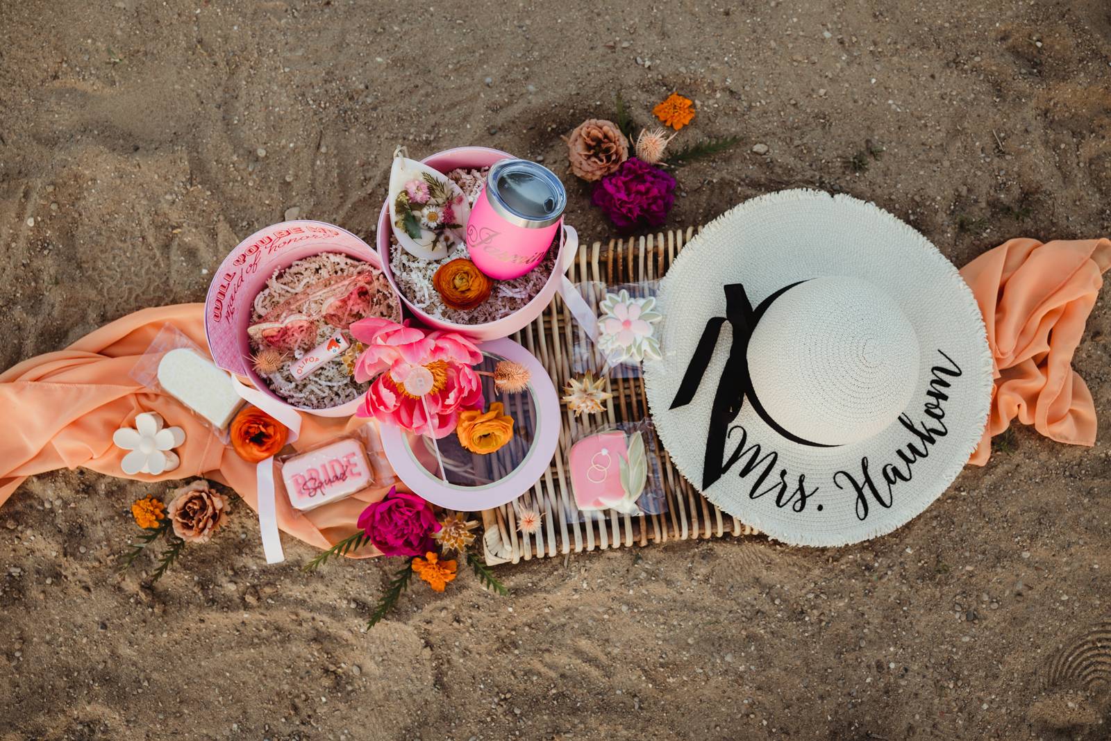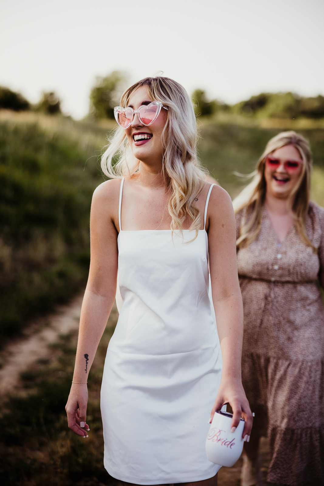 And the customization doesn’t stop there! Each bridesmaid was given a pink wine tumbler adorned with their name, personalized laser-engraved stir sticks, as well as custom heart-shaped sunglasses including their initials.