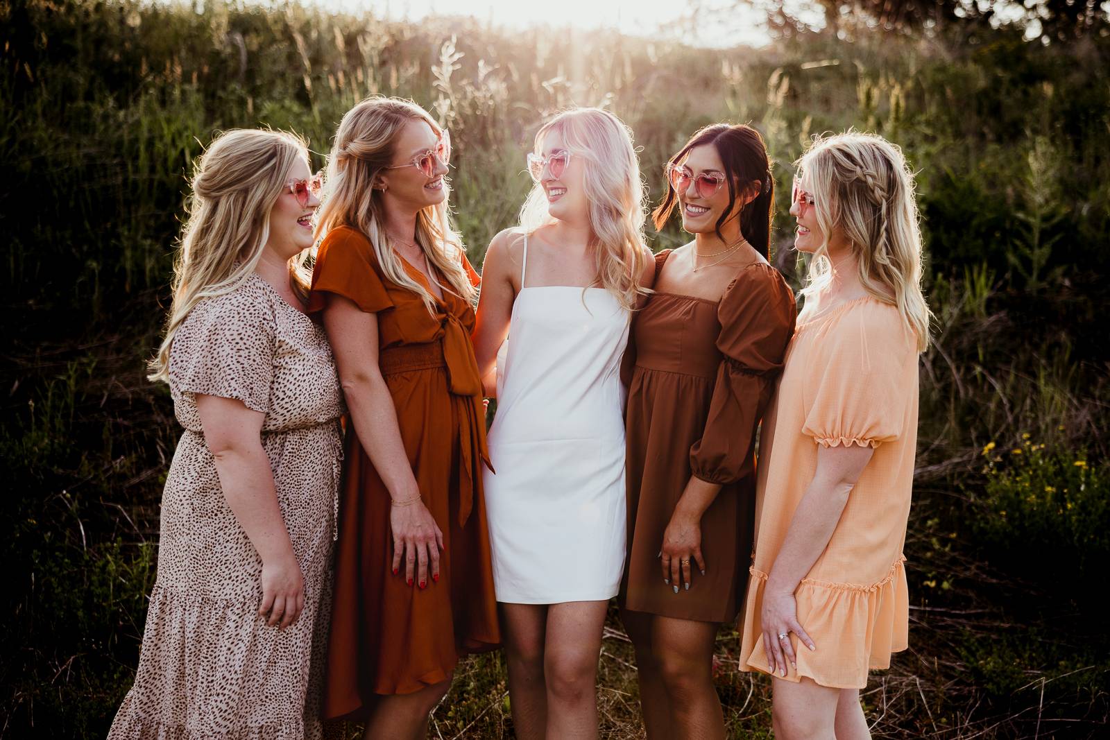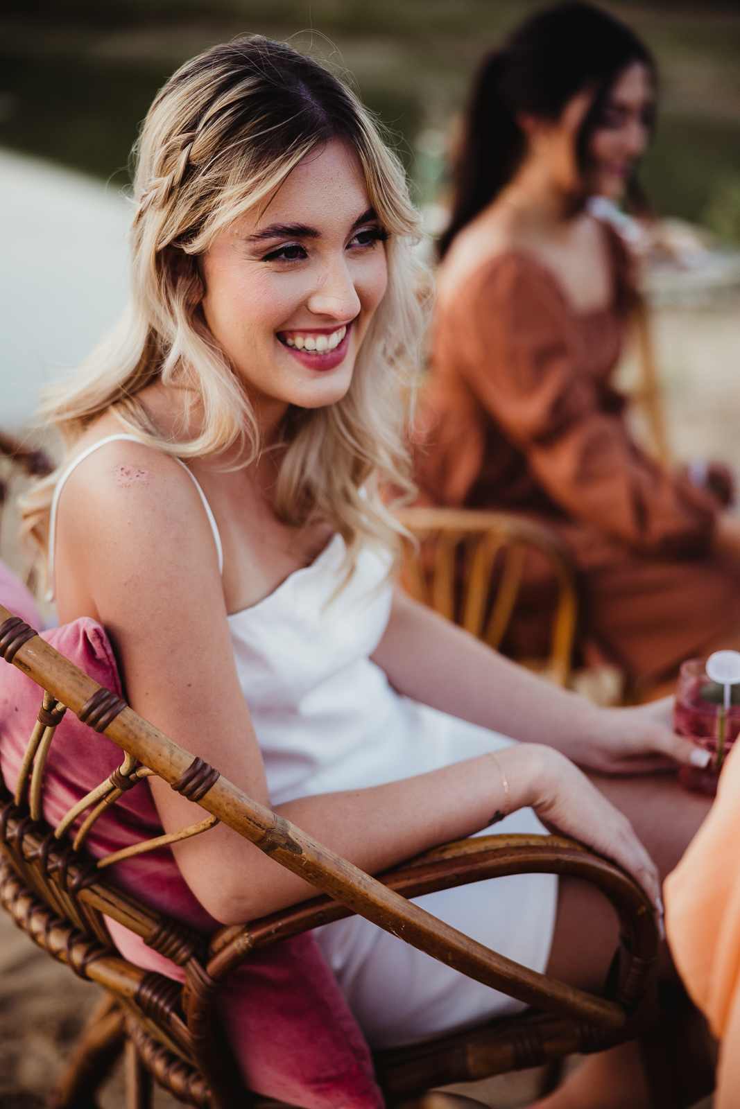 Lovely Elegance has our bride and her squad looking effortlessly radiant and ready for a summer night out with a warm, natural glam makeup look and tousled hairstyles perfect for an elevated beach party.