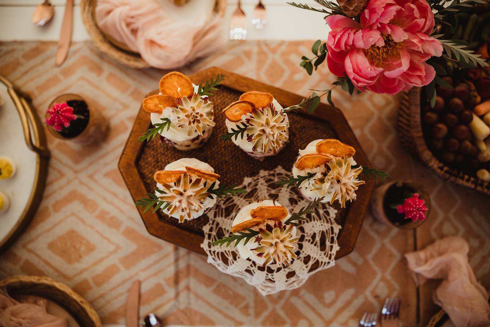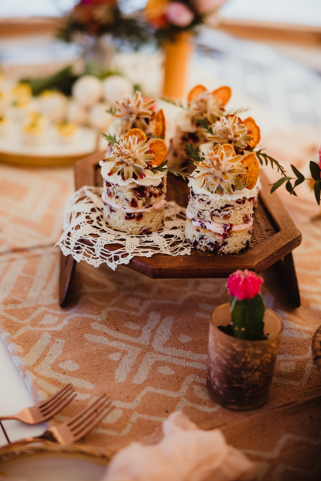 Fruity, naked mini-cakes from Cowboy David’s Bakery add layered sweetness to the vibrant display of delicious light bites.