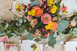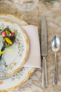 Combining the best of both worlds, this classic garden party romance has a touch of vintage charm. Fresh garden blooms with bursts of color from Enhancements, delightful china dinnerware, and the prettiest ivory lace overlay, see our favorite details all waiting right here from The Wedding Flashers at this year’s Winter Wedding Show!