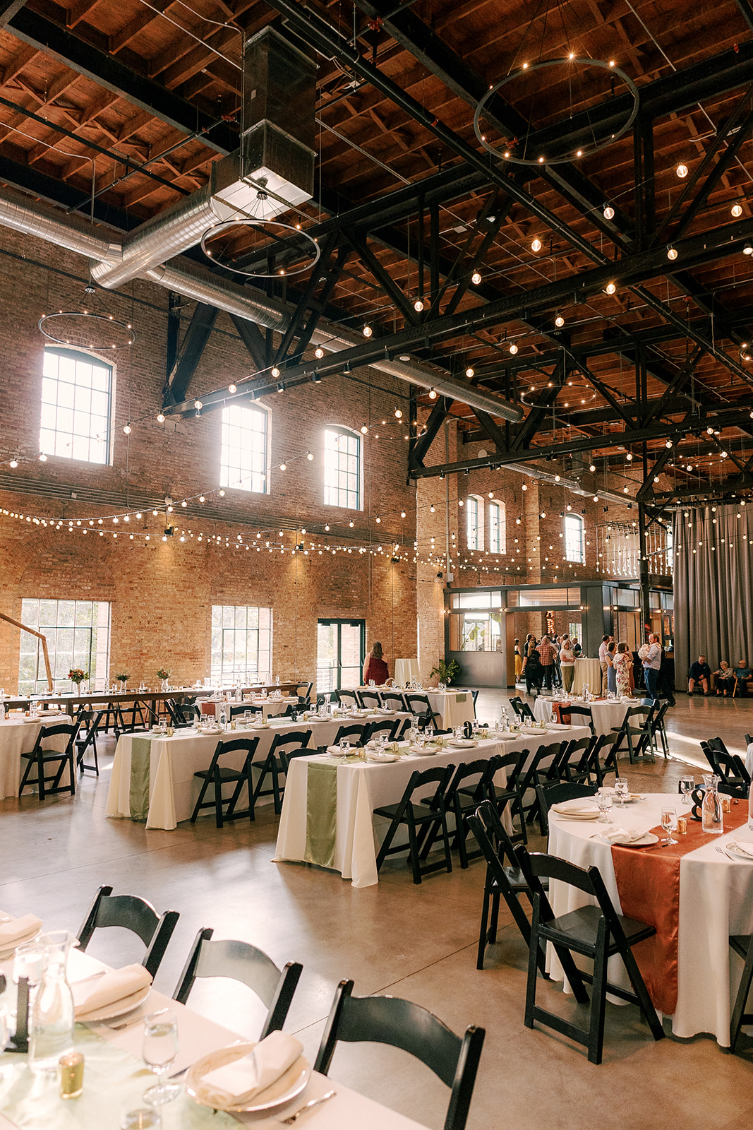 The outside of the building features curved gothic windows and exposed natural brick. Inside, guests are treated to vaulted ceilings, abundant natural light, industrial beams across the ceilings (perfect for string lights!), and no shortage of brick backdrops. With multiple spaces and menu options to choose from, every event will feel right at home in an open and welcoming environment.