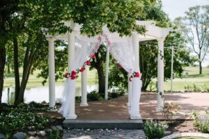 DESCRIBE YOUR WEDDING FLOWERS: We used faux florals – some were fuchsia, some blush, as well as a mix. Peonies with some white flowers mixed in for a few of the tables were our flower combination.
