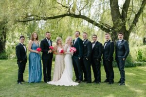 TELL US ABOUT FINDING YOUR DRESS: I picked out a dress on impulse. It was a giant, sparkly, gorgeous Cinderella dress – a purchase I immediately regretted and then about three months before the wedding. I was trying on dresses to try and convince myself that the first one was the one, and I found the perfect, Casablanca d