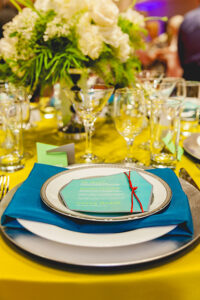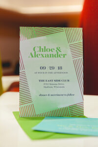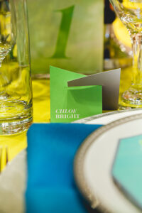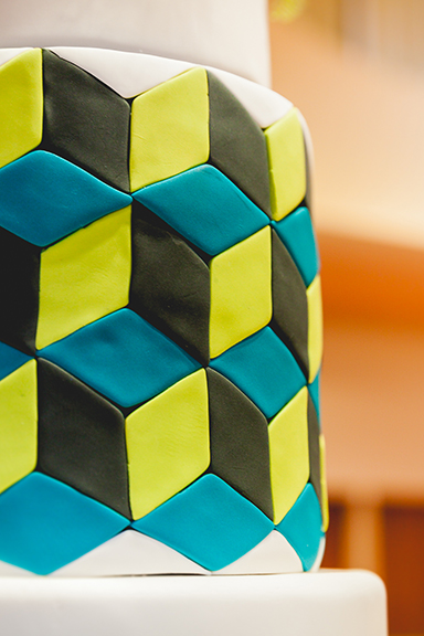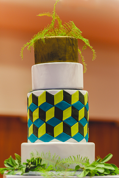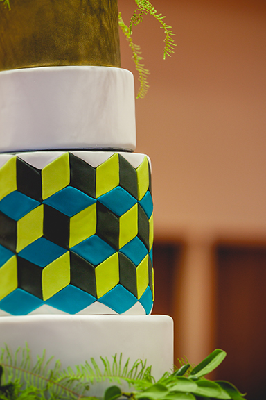 If modern weddings make your heart flutter, this sleek wedding scape design by Korrine with Event Essentials with bold colors and geometric elements is just the inspiration you need to see! It’s bright, bold and beautiful with a stunning cake created by Lindsay with Gigi’s Cupcakes and gorgeous paper goods by LK Bridal Studio featured at our Spring Wedding Show.