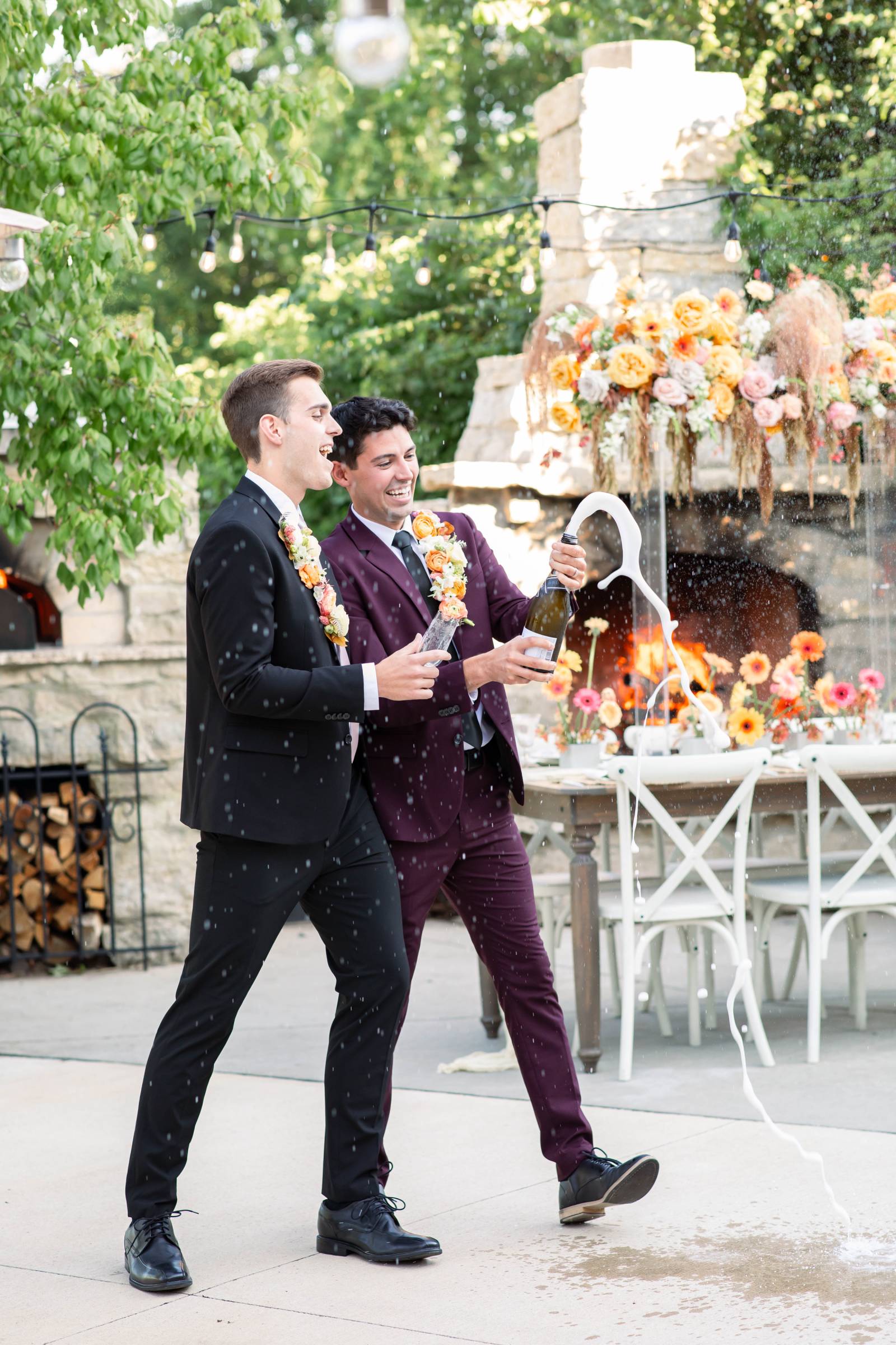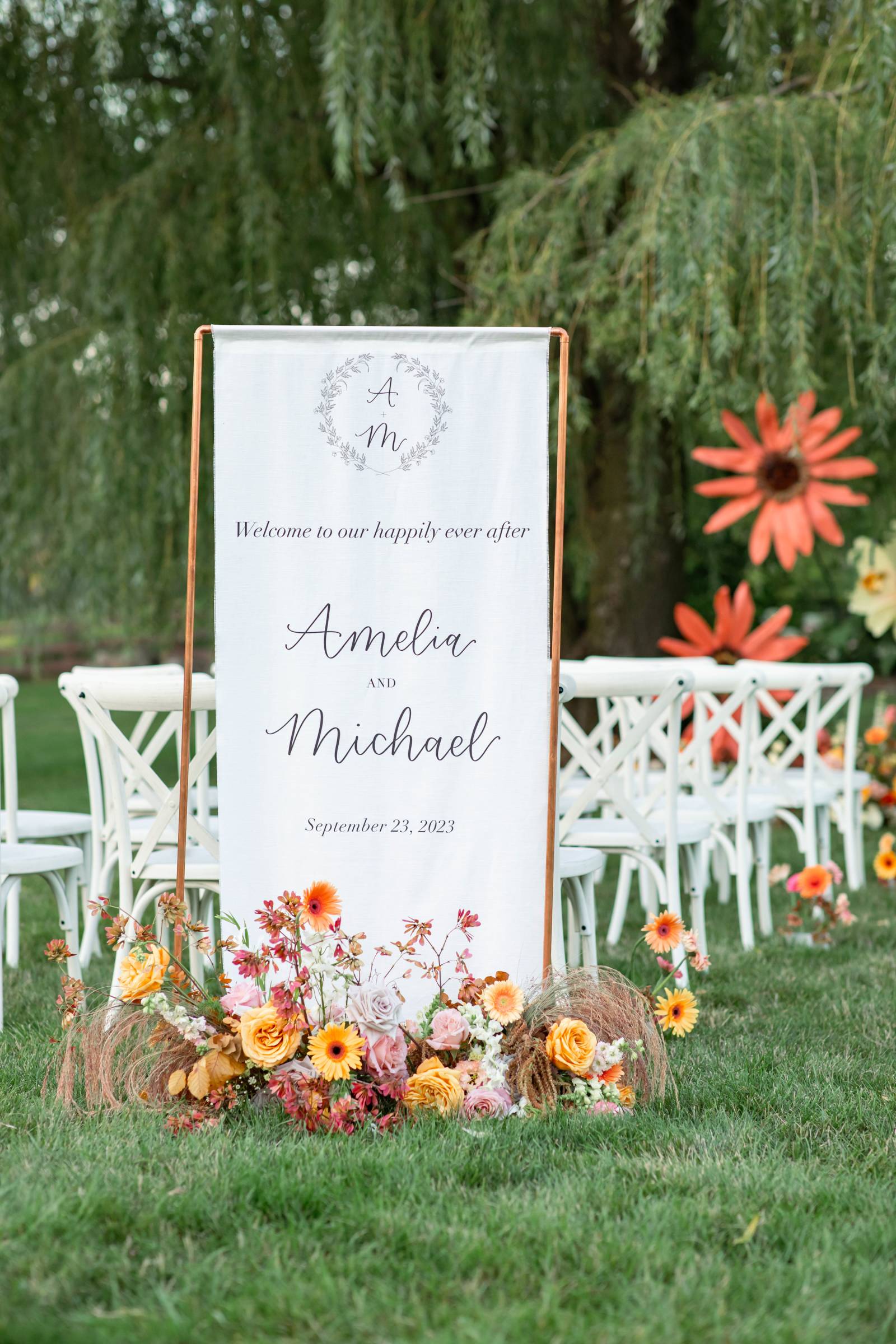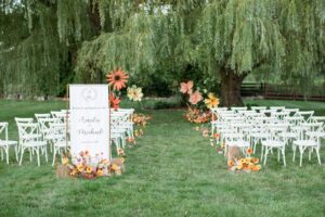 A sun-soaked spring day at Harvest Moon Pond in Poynette, Wisconsin, set the ideal backdrop for this cheerful wedding design, where love was in the air, flowers were in full bloom, and even a furry friend joined in on the celebration!